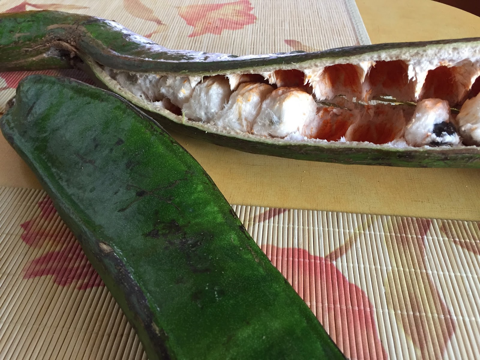 When you open it up, it has fuzzy seeds inside. It’s this fuzziness or pulp that you can eat. |