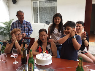 The most unusual eating tradition I’ve seen so far: When someone has a birthday, they are presented with a cake and a “Feliz Cumpleanos” song. After they blow out the candles, then their face is either smashed into the cake or part of the cake is grabbed and smeared into their face. I’ve witnessed two birthdays so far, and two food fights. My family gets a little crazy!
