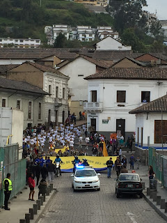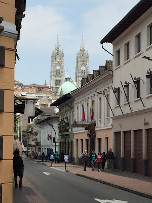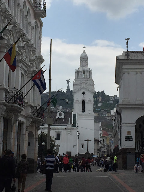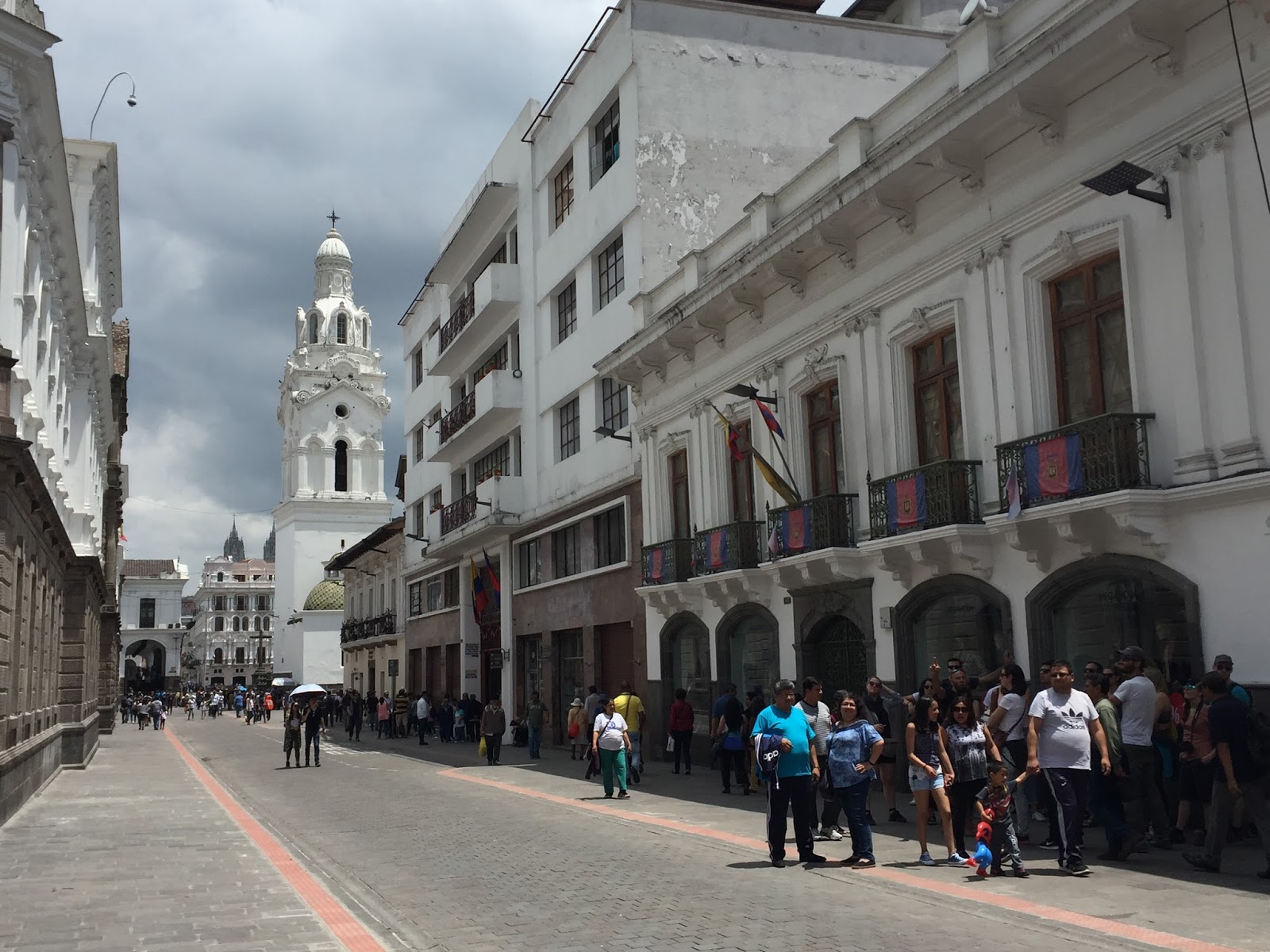 The Panecillo can be seen sitting atop the hill above Garcia Moreno Street,