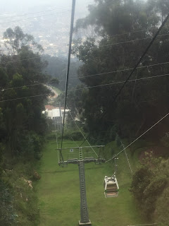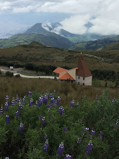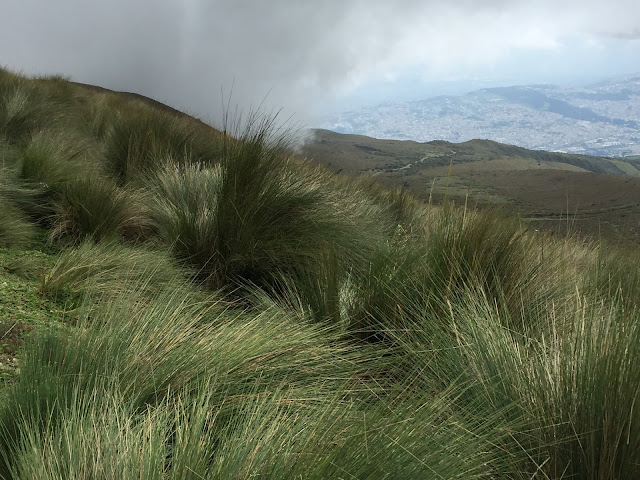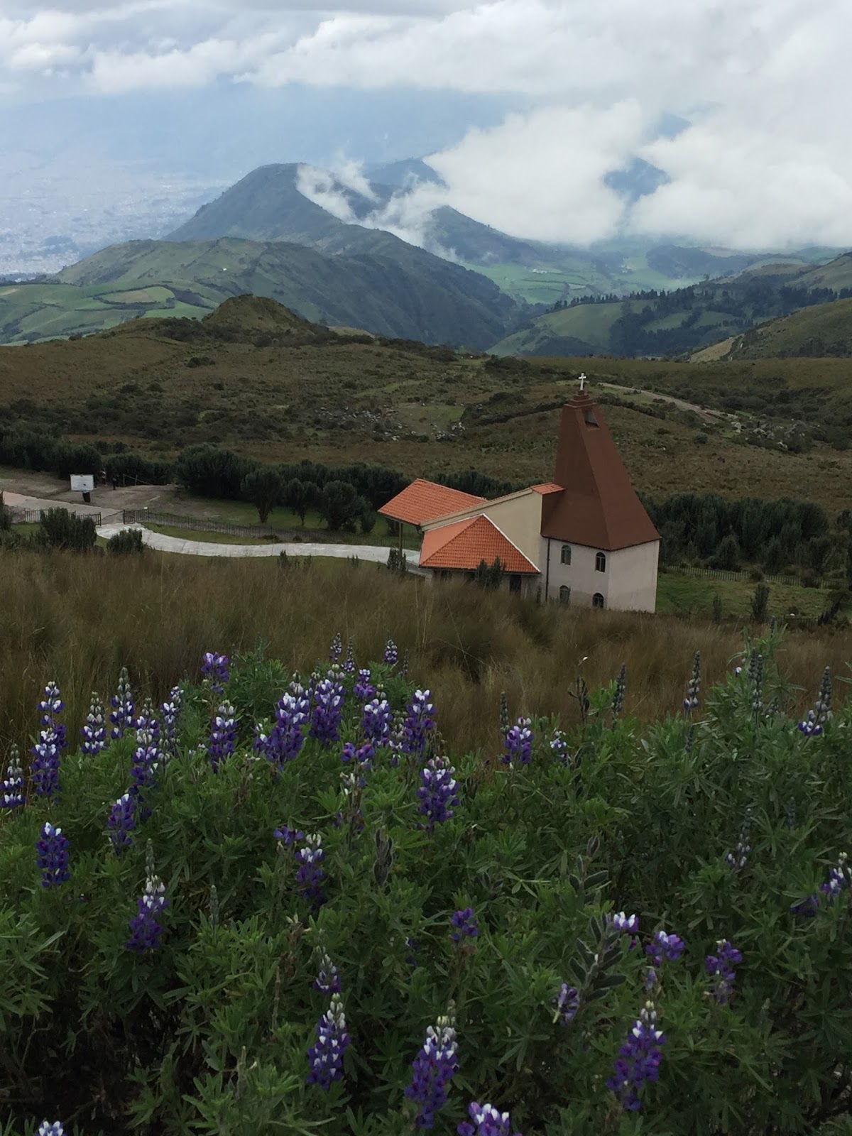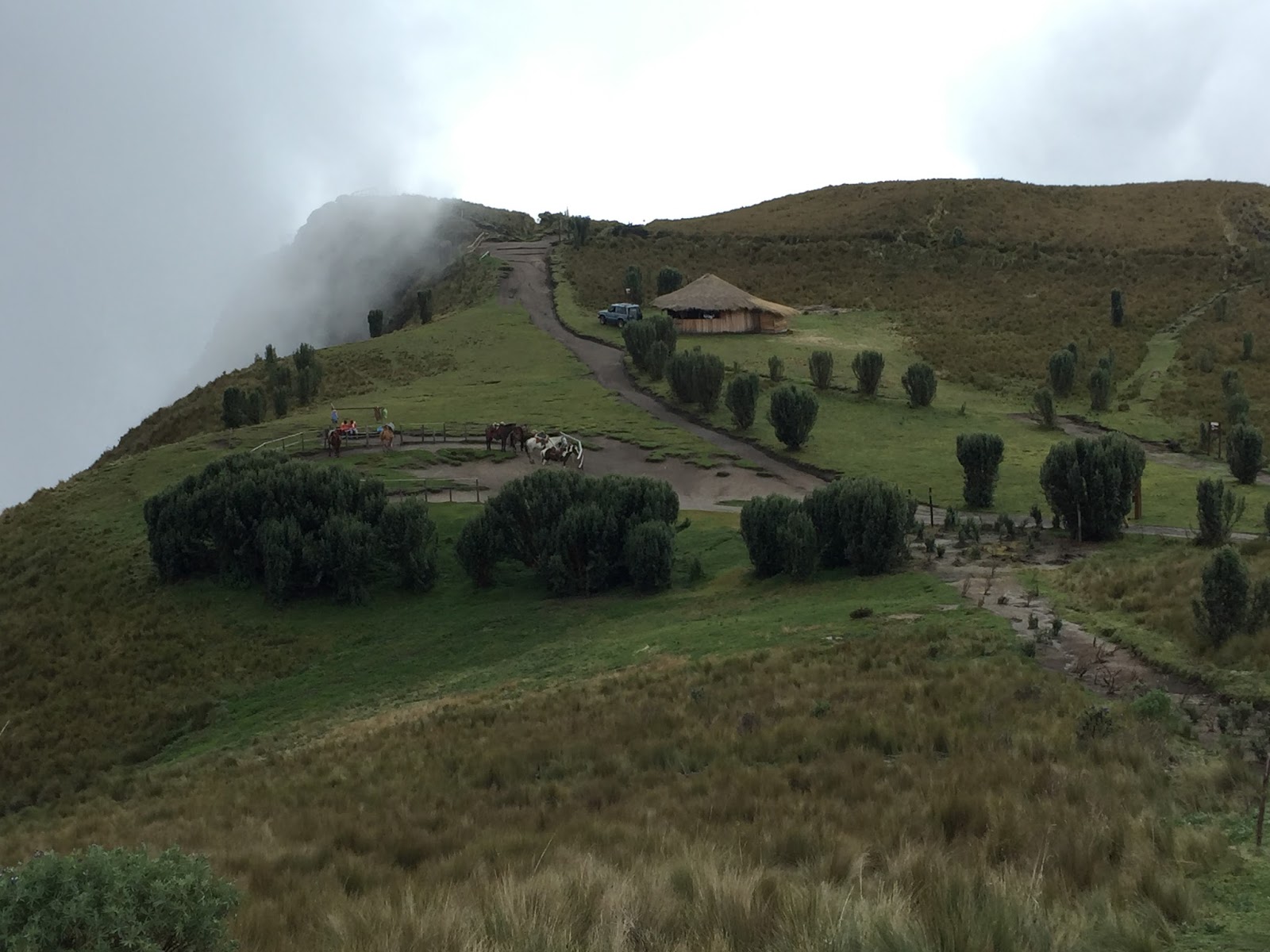 Finally, as if Quito isn’t high enough, the surrounding mountains tempt me daily to explore a little higher. So, to do this more easily, I boarded the Teleferico, a 20 minute gondola ride up the side of Volcan Pinchicha. The top was a little chilly at … let me do the conversion for you… 13,287 feet!