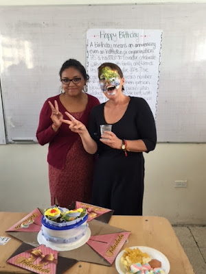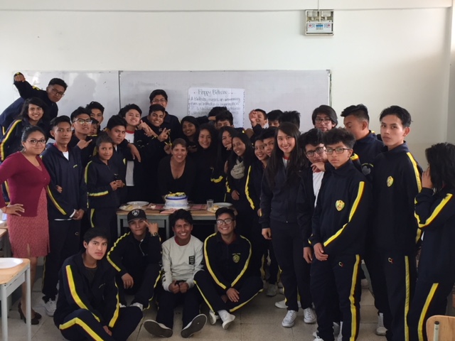 Since Birthdays are a big celebration in Ecuador, the last group insisted that they teach me about what to expect on my birthday. I knew what was coming, but I played along. After singing the English and Spanish versions of Feliz Cumpleanos, I received the royal treatment!