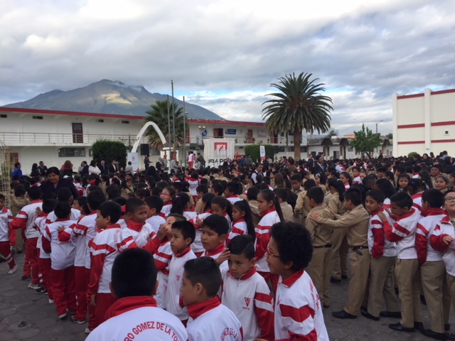 Teodoro Gomez de La Torre is a well-respected, historic K-12 public school in Ibarra named after a local war hero, politician and philanthropist. Because it currently has over 4,300 students, the school day occurs in two shifts. The K-5 grades, plus the 10th-12th graders, start school at 7:00 am. (muy temprano!) Students sit in the same class together, through seven 40-minute periods with a 20- minute snack and recreation break in the middle of the morning. During the break, younger students are given some milk and crackers or they bring their own food. Older kids hang through the bars surrounding the entrance to buy pizza, french fries, or fried chicken from the vendors who congregate on the sidewalk around the school. At 1:00 pm, their school day is finished. The students leave the school grounds and are expected to head home for lunch with their family. The teachers don’t stick around either, punching out at exactly 1:00 to continue their day. Staying after to plan or prepare the next day’s lesson is not part of the culture here for two reasons. First, it’s time for lunch and this is the very important, not to be missed, large meal of the day. Secondly, from 1:00 pm – 6:00pm the 6 – 9 th graders fill the classrooms, and a whole new group of teachers take over the classes and offices for the afternoon. For many teachers, there’s really no place to sit and plan when they’re not in class. During the afternoon, older students may also return to school to attend practices for sports, band, or after school clubs.
