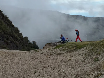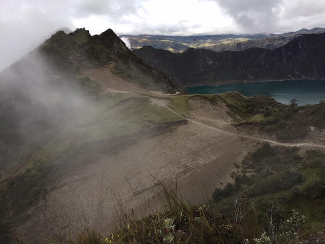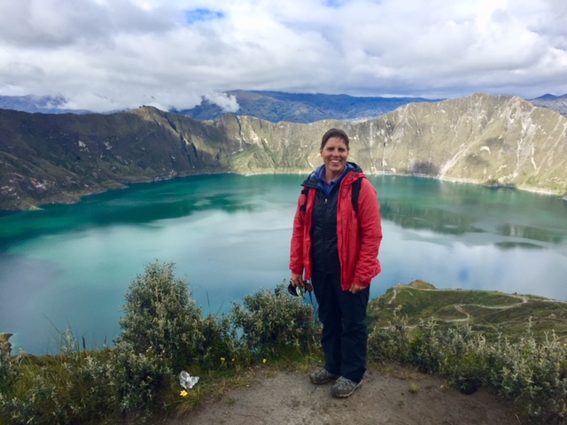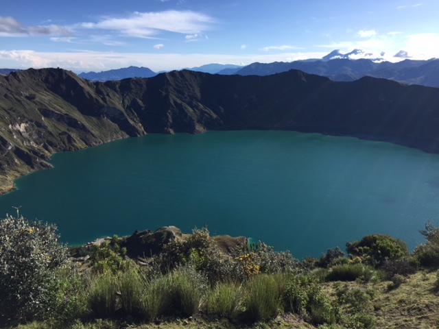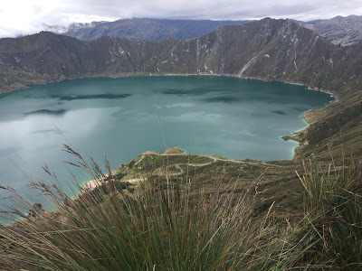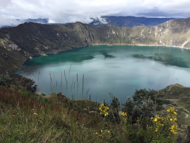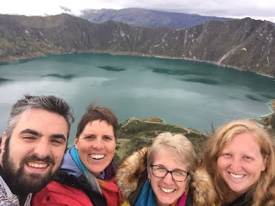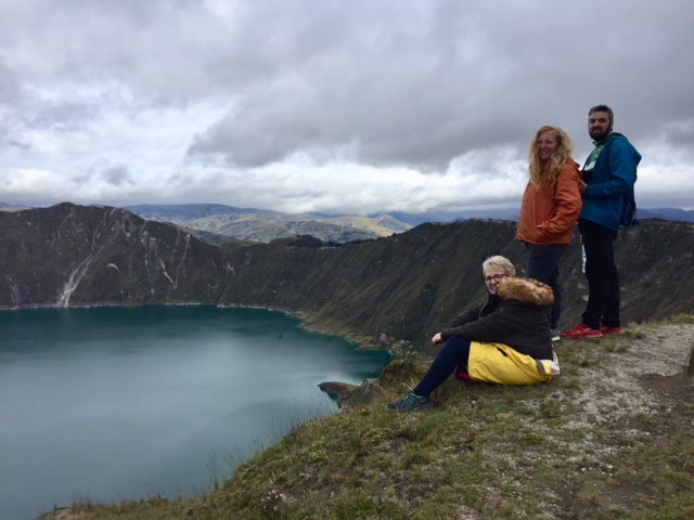 This is Lago Quilotoa, at 12,841 feet. It is a crater lake from a collapsed volcano. The locals have many legends about this “bottomless lake”. As I walked around it, watching the light reflect off its waters and changing its colors from minute to minute, I began to imagine how all the stories had taken hold. It is a very magical place. | My friends Alex, Kendall and Ava enjoying the scenery with me! |