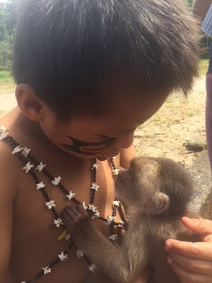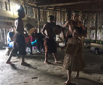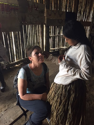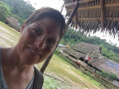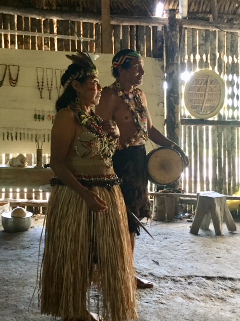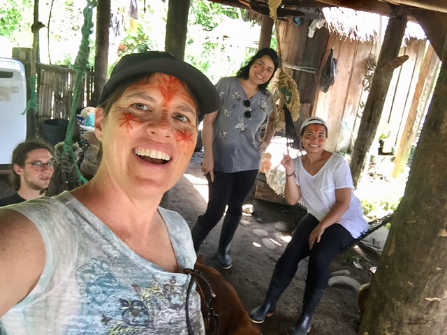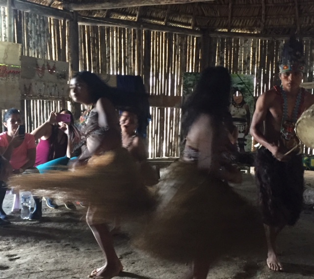| First, we visited a village of the Shuar people where our faces were painted and we participated in a traditional dance. |