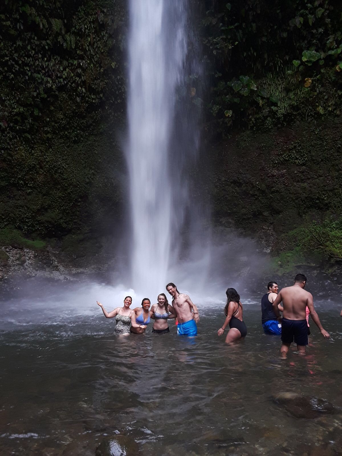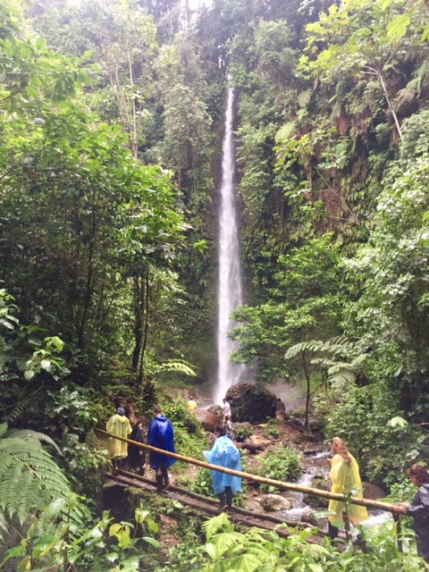 | After dark, we lounged in the thermal hot springs at the base of this waterfall. |