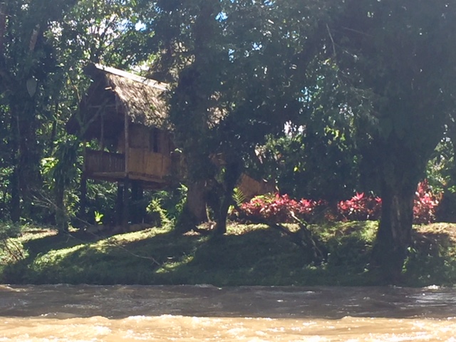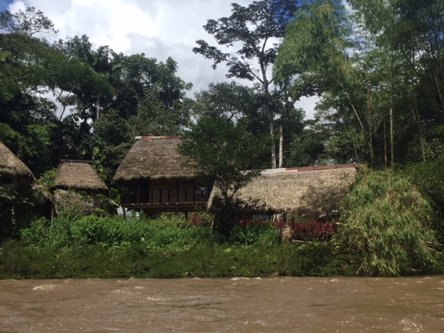 | Some typical Shuar houses along the river |