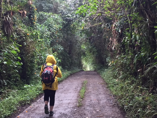 In the United States, we spend so much money on proper hiking boots. Here, they just walk in their Wellies. High rubber Wellington boots are the norm and are passed out to the tourists. They are a must as you wade across the streams, navigate a trail of deep, soggy mud and step over logs well into their state of decomposition.