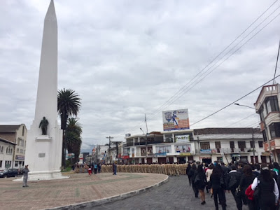 Below, I’ve posted two different videos of the singing of the school song and chant during the solemn ceremony. If you do not see them below, you will need to go to onthewingadventures.blogspot.com to get the full effect. The second video shows the school chant that embodies the patriotism for our school. With this chant, students are honoring el Patrón, Teodoro Gomez, as our boss or master. “Patrón” is also the beloved nickname for our school, as the student body considers themselves the best, or master over all others. School pride and competitiveness is very important in Ecuador and it is especially exemplified at the high-school level. After 4 days of history and festivities, I certainly felt a little pride in being a “Teodorista” myself.