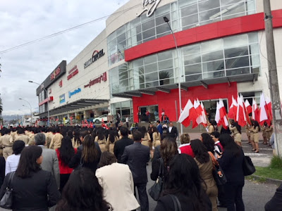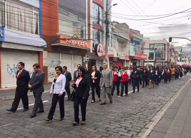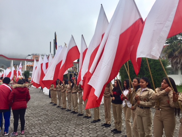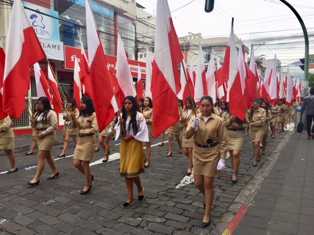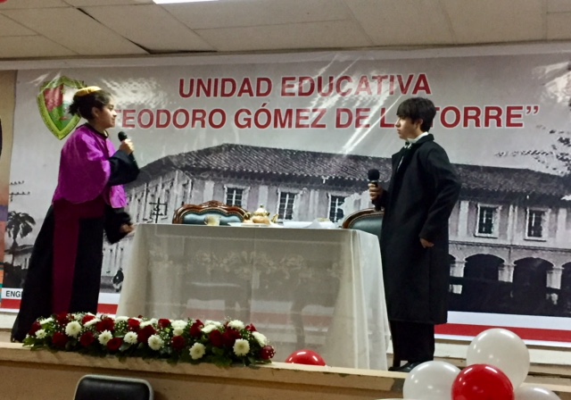 Below, I’ve posted two different videos of the singing of the school song and chant during the solemn ceremony. If you do not see them below, you will need to go to onthewingadventures.blogspot.com to get the full effect. The second video shows the school chant that embodies the patriotism for our school. With this chant, students are honoring el Patrón, Teodoro Gomez, as our boss or master. “Patrón” is also the beloved nickname for our school, as the student body considers themselves the best, or master over all others. School pride and competitiveness is very important in Ecuador and it is especially exemplified at the high-school level. After 4 days of history and festivities, I certainly felt a little pride in being a “Teodorista” myself.
