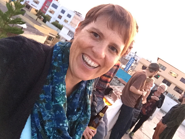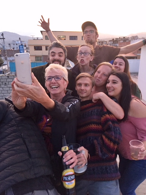 | OK, we started getting a little crazy but the alcohol, the mountain views and the incredible clouds were adding to the reverie on the rooftop! |