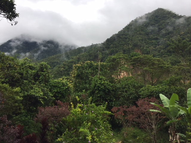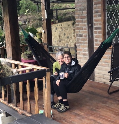 | Sitting on the porch in Zamora overlooking Podocarpus with our morning cup of tea. |