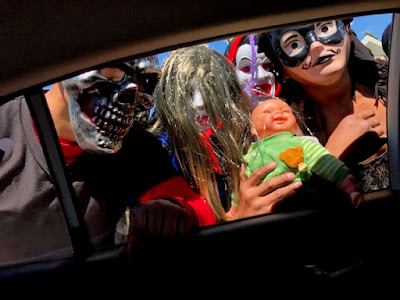 I was in the back seat, and these two groups came upon both sides of the car. I had the windows down to take pictures, and they reached in from both sides to tickle and harass me. It was all in good playful fun! We gave them some requisite change, and then they asked for more “for the Baby”. It was so hilarious.