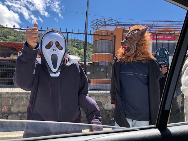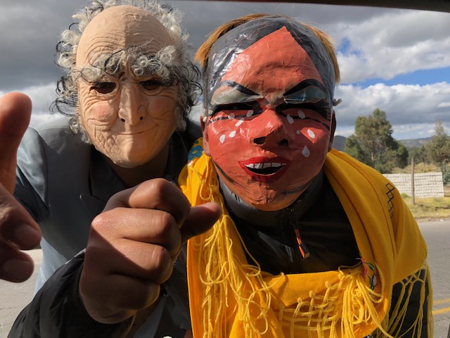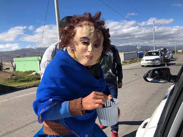 The highlight of all New Year’s Celebrations are the Locas Viudas. These are young men who go all out dressing as women, or other hideous characters, and party throughout the day, well into the night. A viuda is actually a widow, and historically, women who lost their husbands during the last year would take to the streets to publicly morn their husbands and beg for money. In the last 20 years however, the tradition has really changed. We were driving along the Pan American Highway for many hours on December 31st trying to get to Riobamba. Starting well before noon, we spotted many groups of these modern “Crazy Viudas” in the street. They essentially stand in the road, accost your vehicle and ask for spare change… which becomes their beer money as the day carries on.