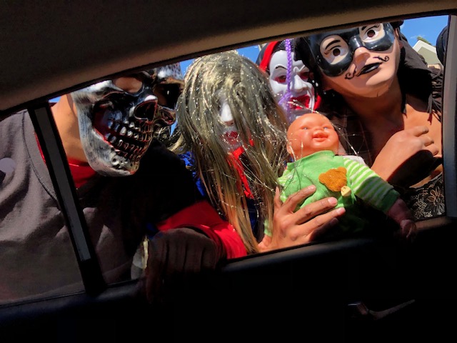 I was in the back seat, and these two groups came upon both sides of the car. I had the windows down to take pictures, and they reached in from both sides to tickle and harass me. It was all in good playful fun! We gave them some requisite change, and then they asked for more “for the Baby”. It was so hilarious.