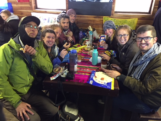 Eating our lunch in the Refugio- think Alpine Hut. This is where serious climbers sleep before they start their middle-of-the-night ascent to the top. |