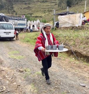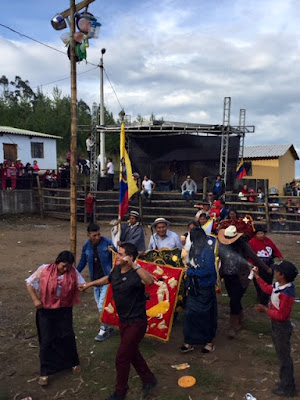 Margarita’s grandparents live high up in the hills above the city of Riobamba. They live in a pueblo, or cluster of houses, known as Bacun. (We counted 22 houses clinging to the mountainside in this pueblo.) For Carnaval, it is tradition for all the families in this valley to represent the spirit of their small pueblo as they gather together in the central, and slightly larger community of Punin.