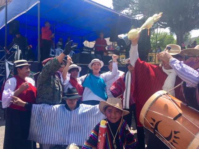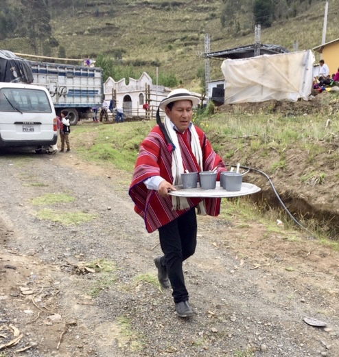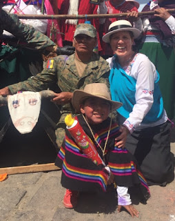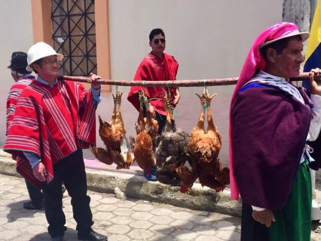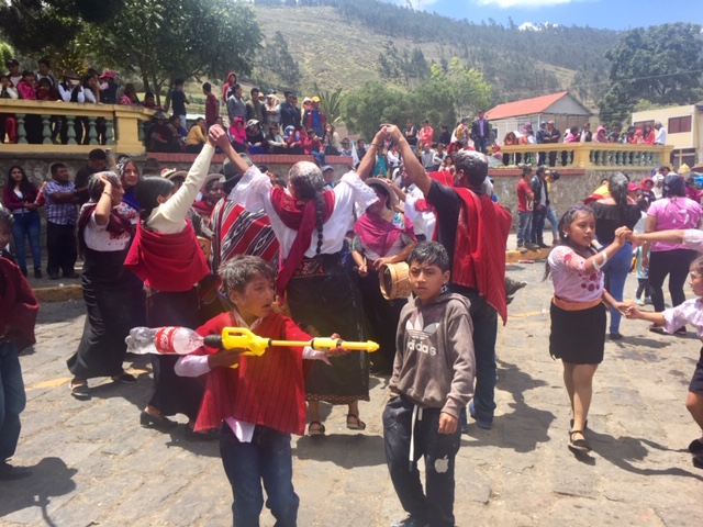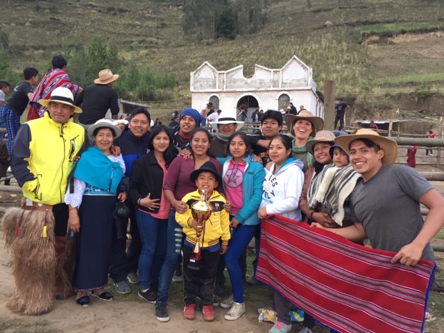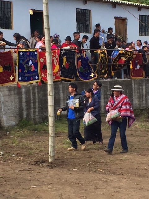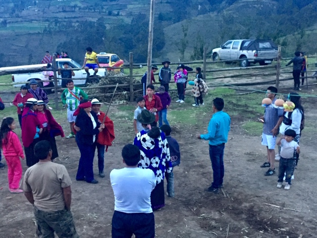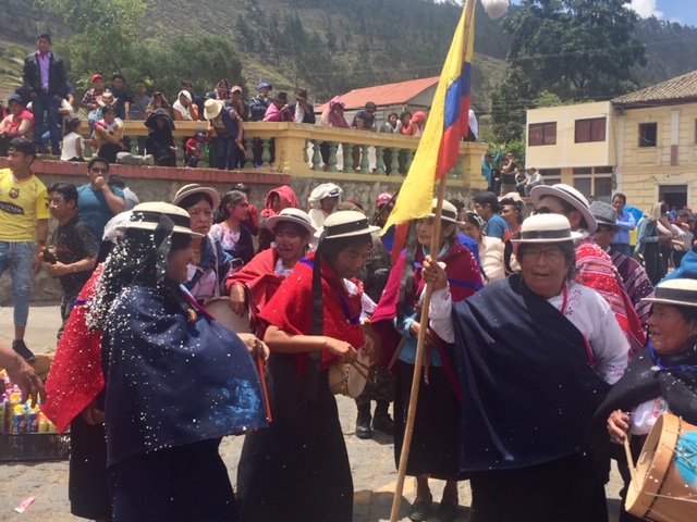 Margarita’s grandparents live high up in the hills above the city of Riobamba. They live in a pueblo, or cluster of houses, known as Bacun. (We counted 22 houses clinging to the mountainside in this pueblo.) For Carnaval, it is tradition for all the families in this valley to represent the spirit of their small pueblo as they gather together in the central, and slightly larger community of Punin.