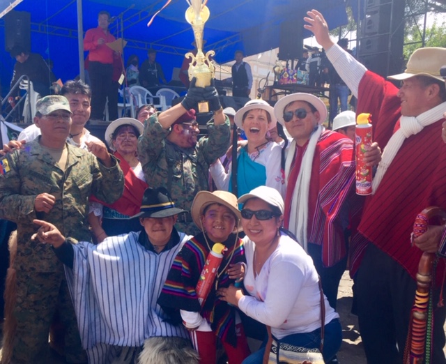 And we won! Notice the trophy presented to our community. Notice also that Margarita is in front and she isn’t wearing a traditional costume. It’s because she gave me hers for the day.