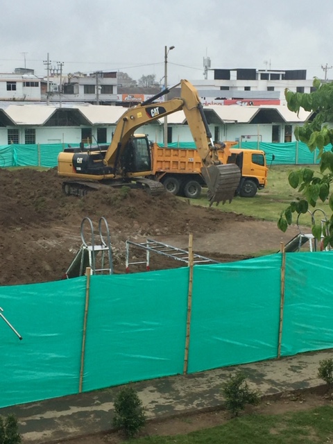 So, now, this is what our playground looks like. The kids have no place to play, except the parking lot, for the rest of the school year. |