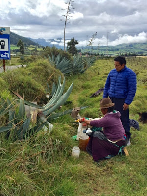 She was harvesting Chaguarmishqui along the side of the road. The water collected in the well of this plant is widely respected as an traditional cure for muscle and bone pain. We stood on the side of the road for over 15 minutes chatting with her and she was thrilled