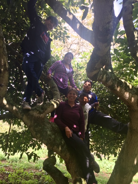 | Immediately, the trees called to us, and we spent much of the next hour climbing them. |