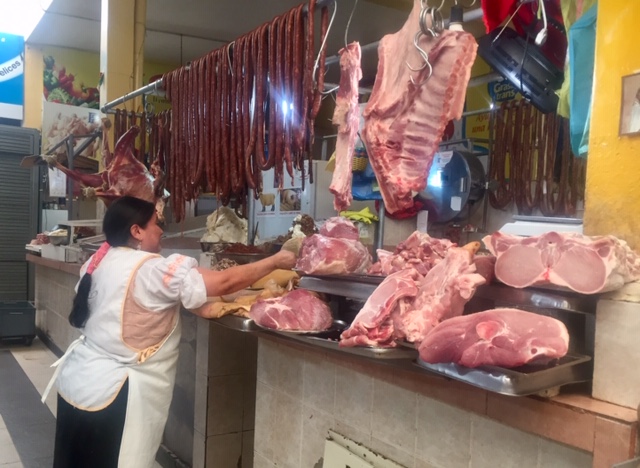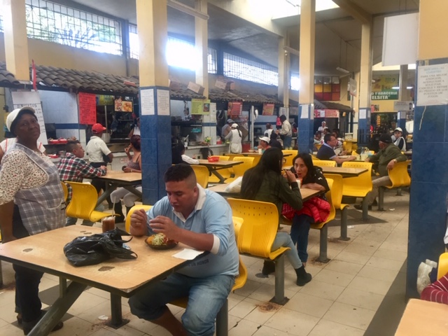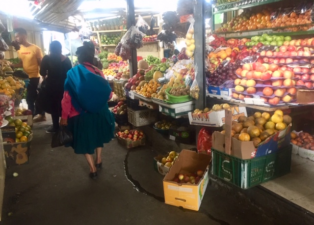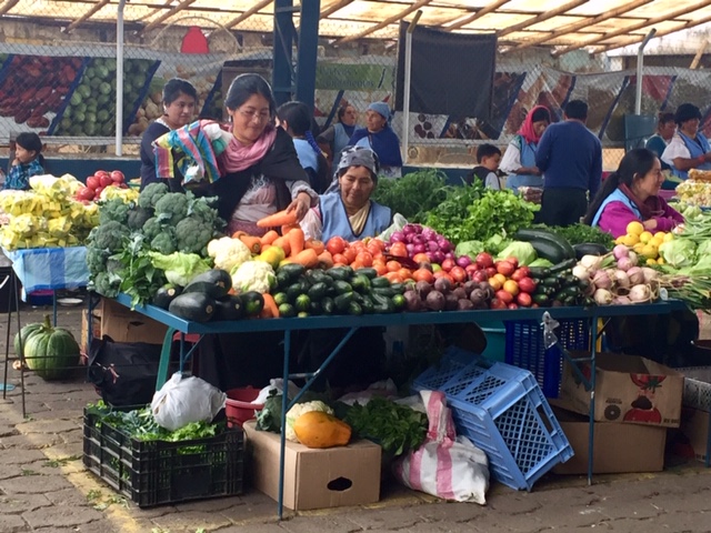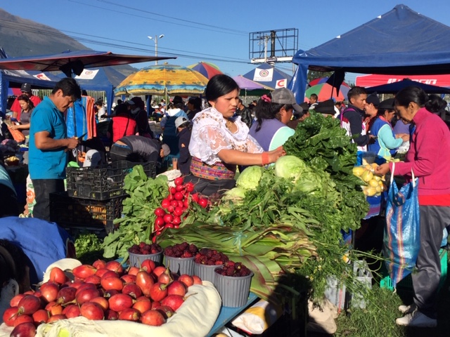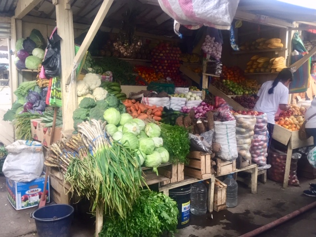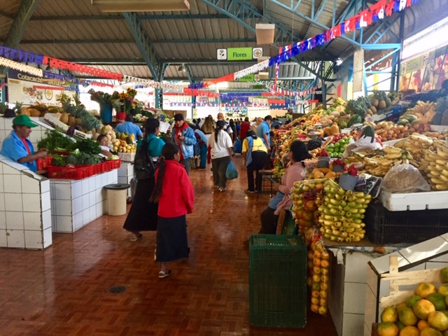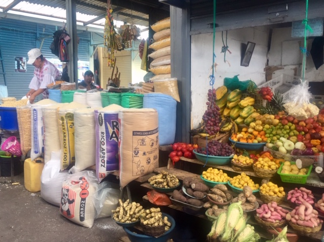 I love mercados, the markets. When I travel to a new city, it’s one of the first places I explore. Here in Ibarra, I wander into our Amazonas Market at least once a week and always find a section that I’ve never seen before; of course there’s the fruits and vegetables, the clothing, the shoes. But there’s also a section for knife sharpening, clothing alterations, potted plants, even potatoes. Only potatoes. Walking through the maze of aisles, I’m enveloped by the overpowering smells, the plethora of sounds and colors, and the energy calibrated to a constant and frenetic vibration. I push past a cart of plastic whatnots, duck under some hanging dried fish, dart around a pile of freshly cut herbs falling into the walkway, past a TV blaring the mid-day soap opera, and through the constant prattle of the vendors, “Que quieres, mi hija?”, “A la orden.”