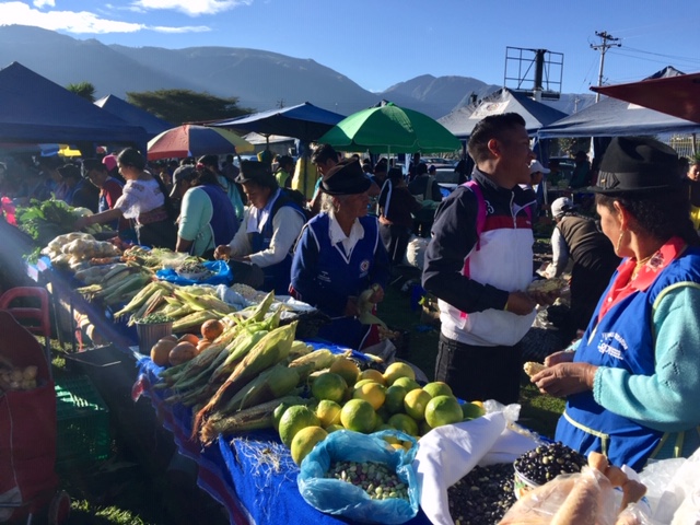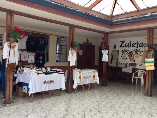 | Farmer’s Markets or ‘Small Producer Markets’ abound in this country. This is a little Saturday Market in the town of Zuleta, about 30 minutes outside of Ibarra. The ladies of Zuleta are famous for their beautiful embroidery. At this market you can peruse their blouses, table cloths and all kinds of other home accessories. In addition to their embroidery, other local artisans sell honey, homemade vinegars and liqueurs, a unique variety of grains, and soaps. |
