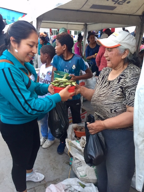 One week, Margarita was listening to the radio and became very excited over a commercial for an event at a nearby town called Pimampiro. She immediately decided that we needed to go and made plans with Jose for the weekend. I really didn’t understand where we were going until, on that Friday night, we arrived at a trueque, or barter fair. At this type of market, no money is exchanged, only food. We had a box of bread rolls and two large bottles of soda to bargain with – a bit strange since all the other participants were farmers with huge bags of fresh produce. But, it ended up being just the ticket! People were pushing their way in front of us to offer whatever they had in exchange for a portion of what we had.