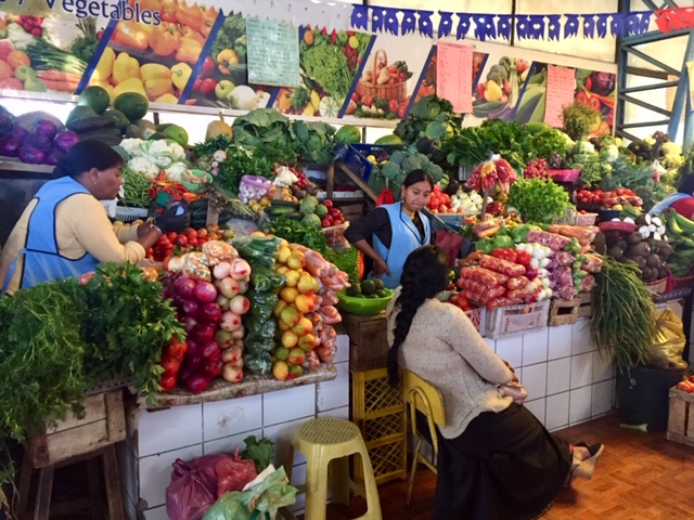 | I am including these pictures to give you the overwhelming impression that there is an overwhelming amount of fruits and vegetables in this country. Knowing this, it is a wonder that the staple Andean diet is primarily meat and starch. So, what happens to all the fruits and vegetables that don’t get eaten? It’s given to their pigs, which turn it into a source of protein. |