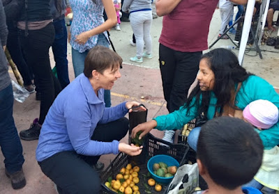 | Margarita exchanged her bag of bread for some sweet red bananas. She loved telling all the vendors that she had brought the Gringita to introduce me to the trueque. |