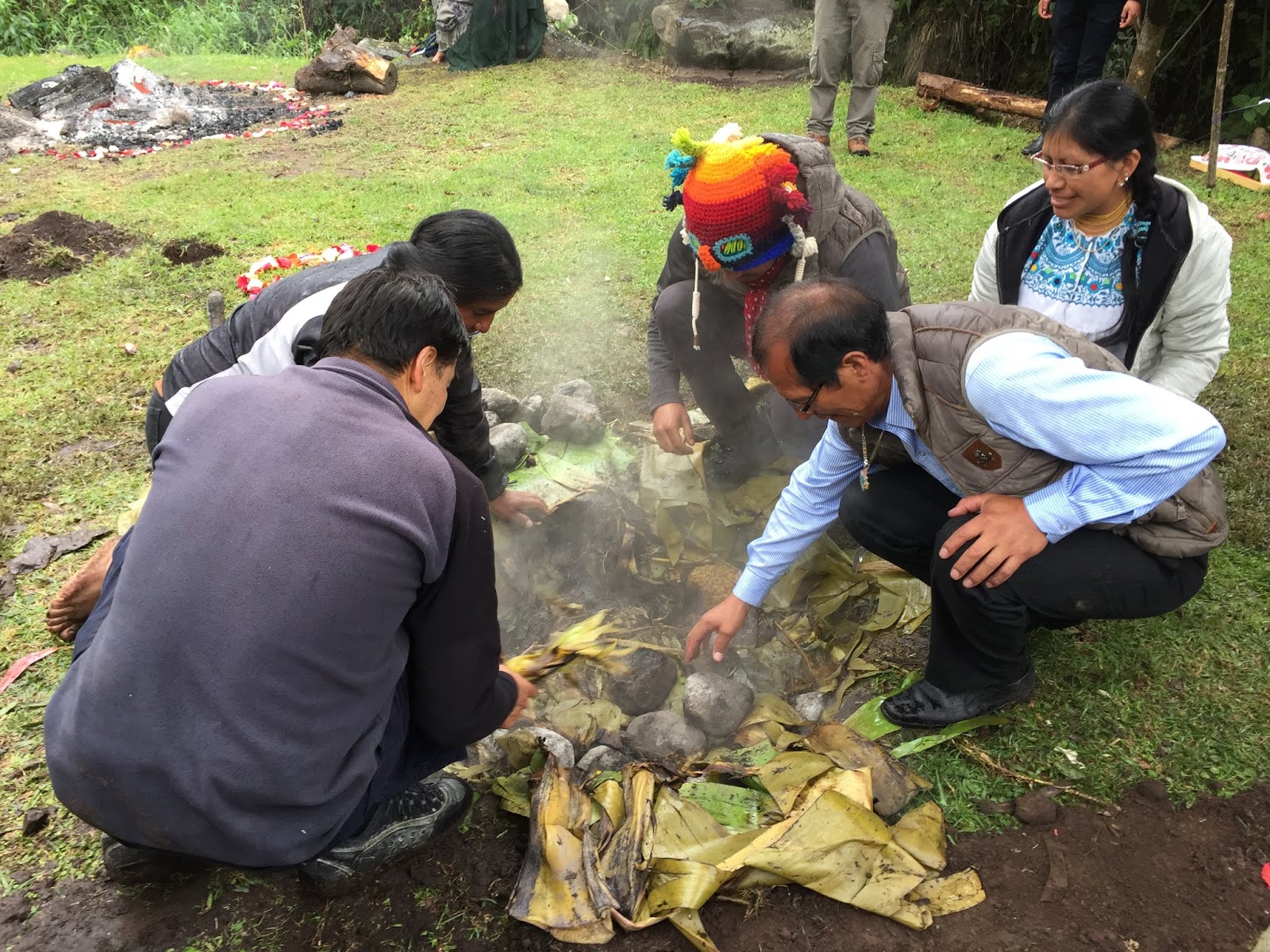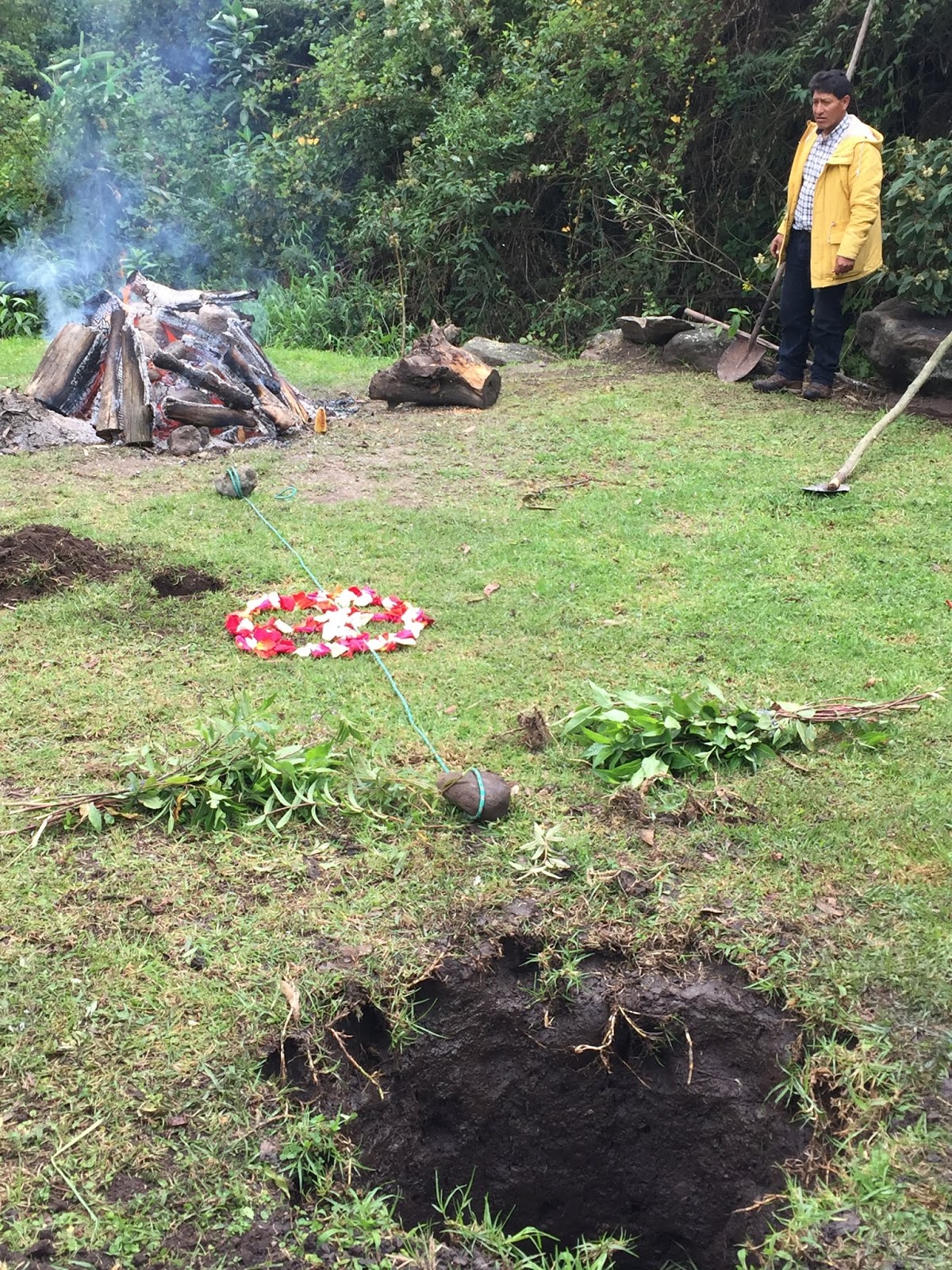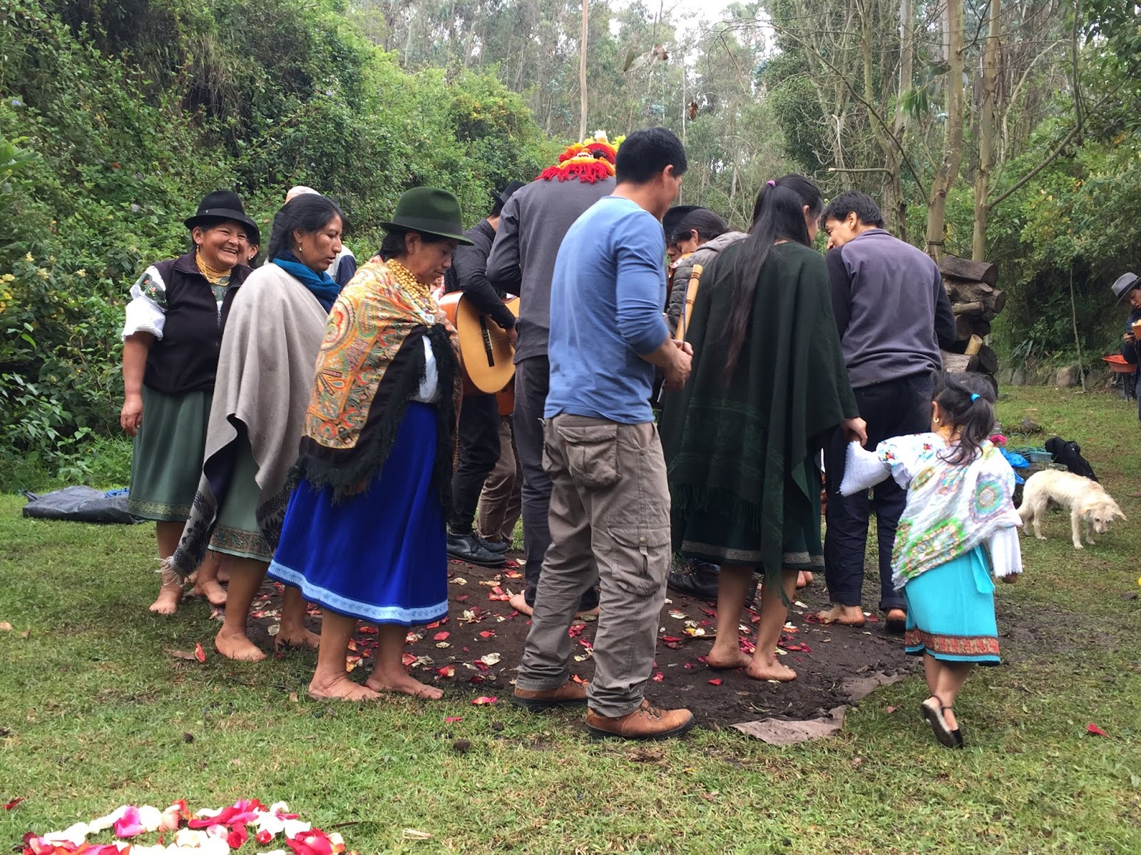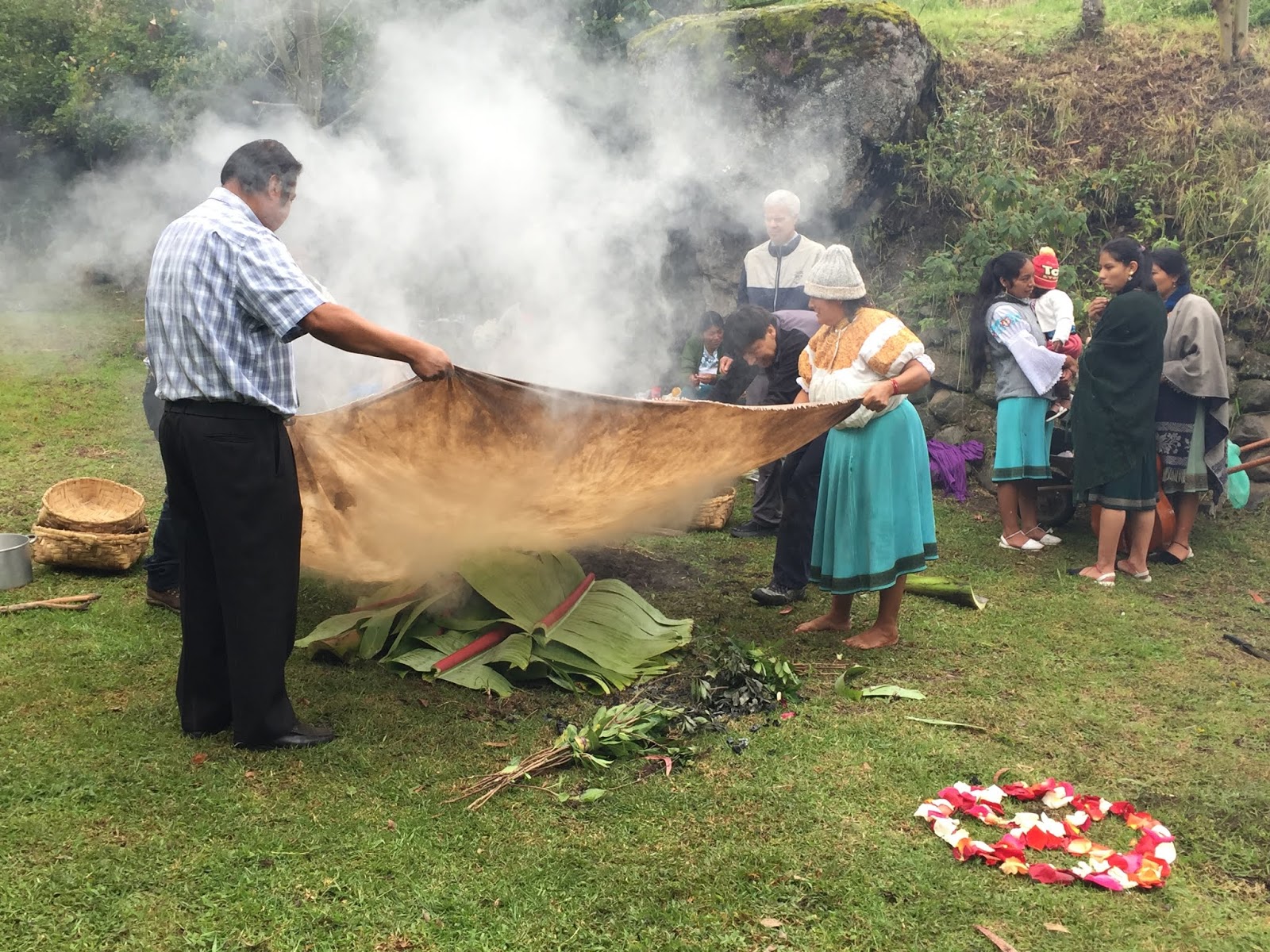 At about this time, local musicians showed up and a dance circle was initiated to pound down the soil and form a seal for the steam. I threw off my shoes and joined the circle. Dancing in the sprinkling rain, with mud squishing between my toes, I gave thanks to Pachamama for all the beautiful blessings and nourishment she has given me this past year and I asked her for another year of inner peace, exploration, and connectedness with all that I am living. It was a really beautiful moment.