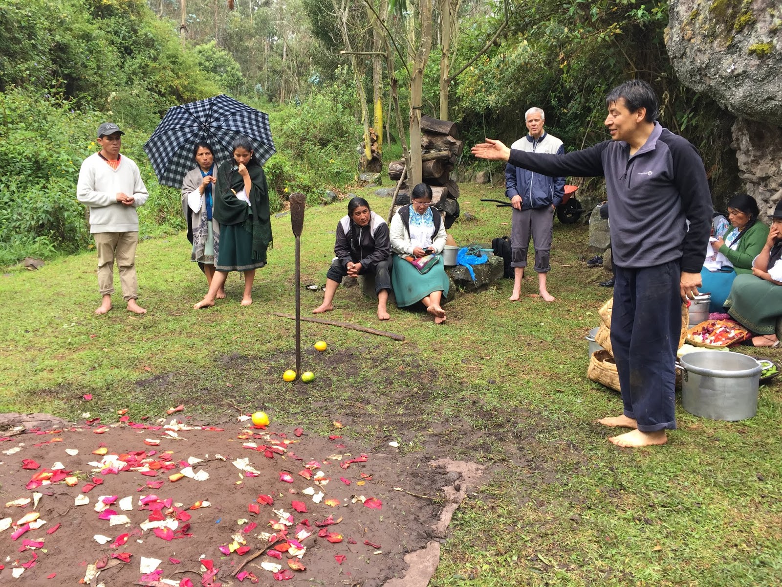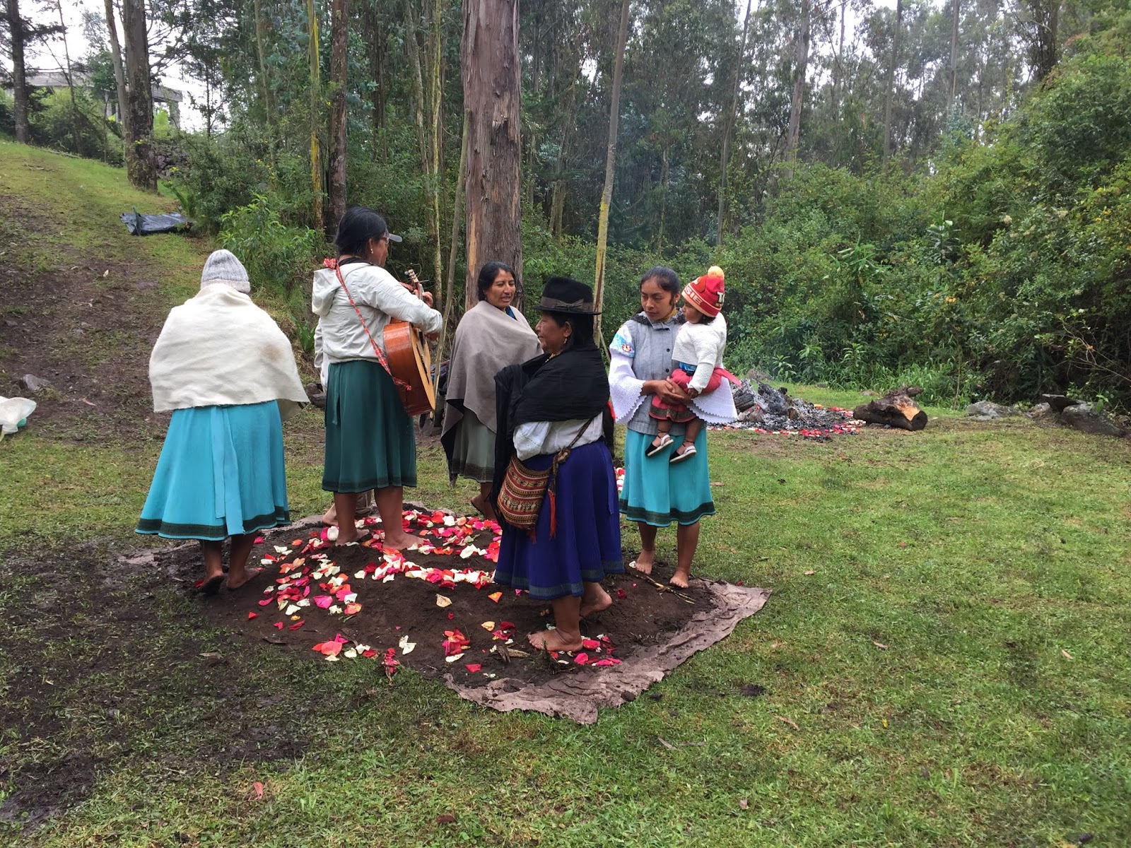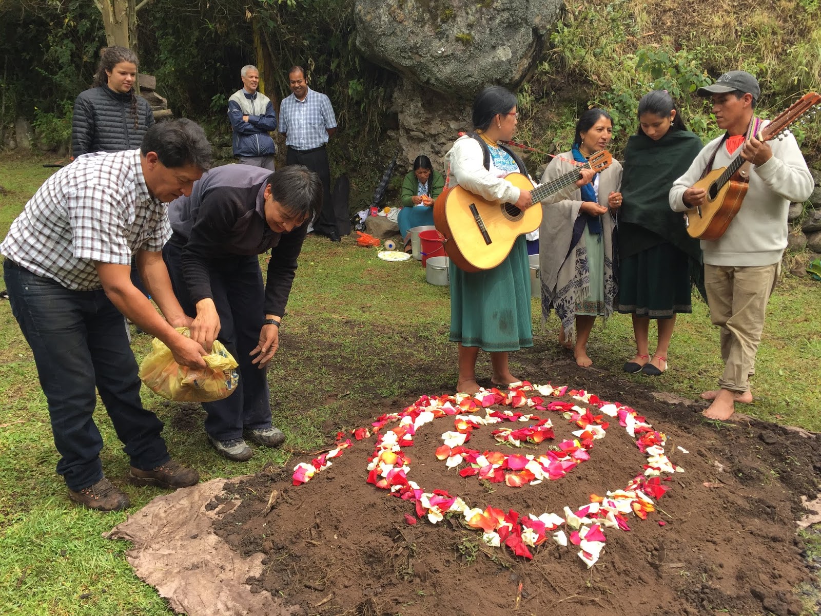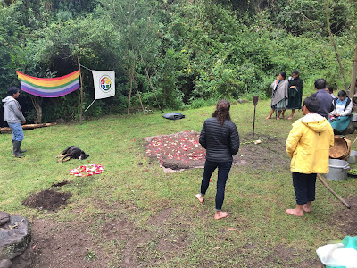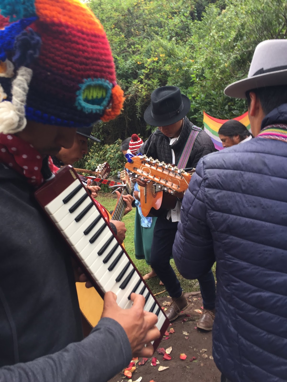 At about this time, local musicians showed up and a dance circle was initiated to pound down the soil and form a seal for the steam. I threw off my shoes and joined the circle. Dancing in the sprinkling rain, with mud squishing between my toes, I gave thanks to Pachamama for all the beautiful blessings and nourishment she has given me this past year and I asked her for another year of inner peace, exploration, and connectedness with all that I am living. It was a really beautiful moment.