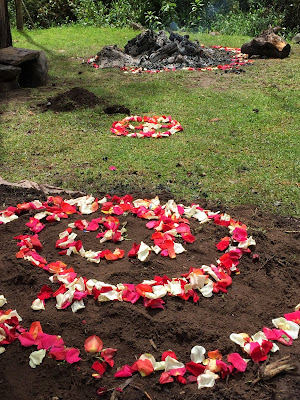 | Flower petals were lovingly placed in a spiral on the mound. |