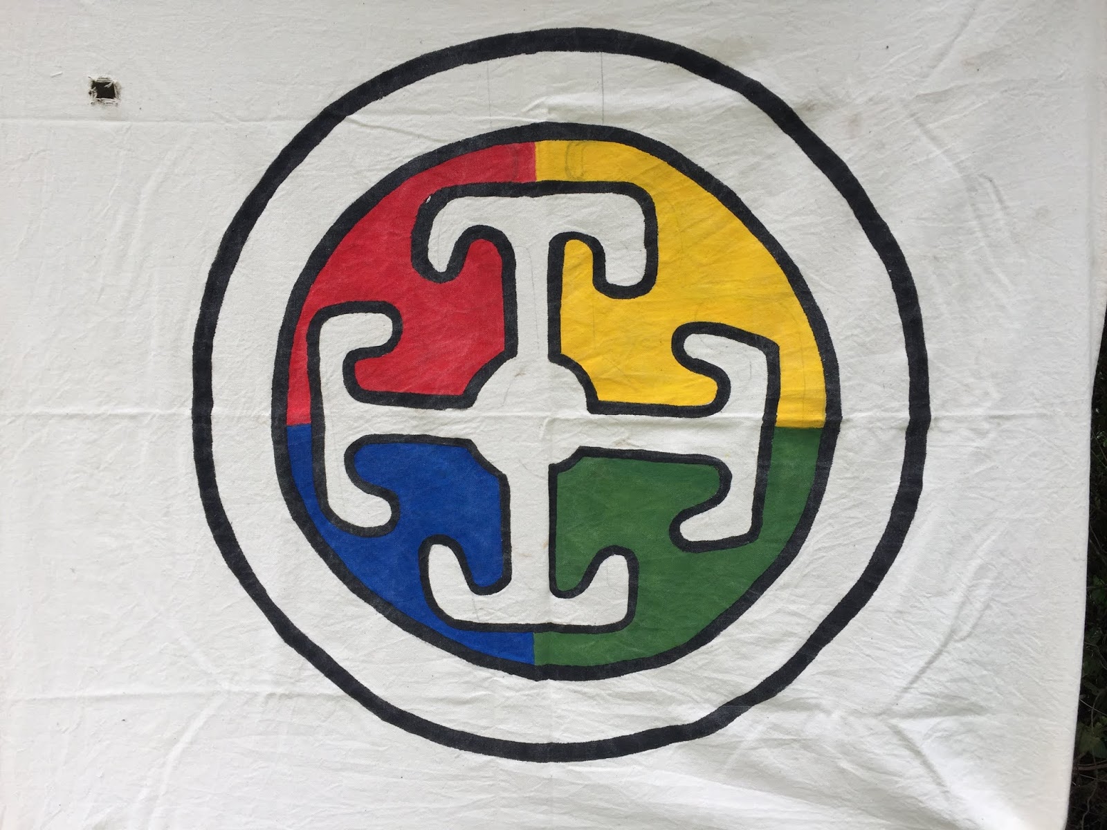 In addition to the flag featuring the Andean agricultural calendar, they also hung the rainbow flag of the Ecuadorian Indigenous people. |