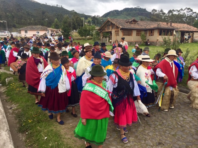 To celebrate, the Spanish-blood “Mestizos” such as the members of my family, gather with the local Indigenous people to circle dance wherever there is space.  The dancers encircle a group of musicians that play a special genre of music called, of course, Sanjuanito.  The circle is a nod to the agricultural cycle, and it represents the path of the sun.  I admit, I thought all circles looked the same, but Jose has been educating me about the different styles adapted by each of the communities.
