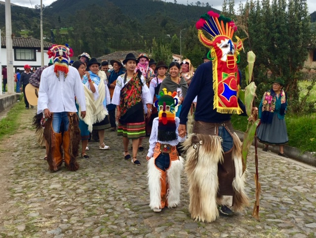 To celebrate, the Spanish-blood “Mestizos” such as the members of my family, gather with the local Indigenous people to circle dance wherever there is space.  The dancers encircle a group of musicians that play a special genre of music called, of course, Sanjuanito.  The circle is a nod to the agricultural cycle, and it represents the path of the sun.  I admit, I thought all circles looked the same, but Jose has been educating me about the different styles adapted by each of the communities.