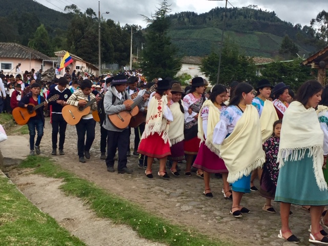 Starting the festivities early, in mid-June, the primarily Indigenous village of Zuleta hosted a Gran Pregón, or a big Opening-Day parade.  After arriving and waiting for 2 hours, I started to chat with a woman named Lorena whose family still lives in Zuleta.  I learned from her that this pregón started high up in the hills, and as it wound its way down the paths of the mountain, it gathered up groups of neighbors.  By the time they arrived into the tiny Central Plaza of Zuleta, representative groups from each of the hillside barrios made an entrance with their best singing,