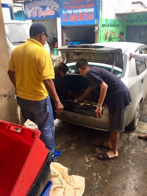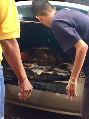 and start loading raw fish into his trunk. No crate. No plastic. No ice. Just fish.