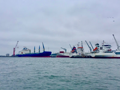 | Banana ships waiting in the Port of Machala |