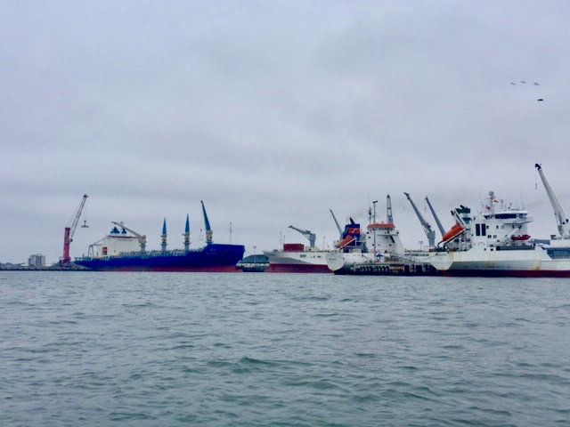 | Banana ships waiting in the Port of Machala |
