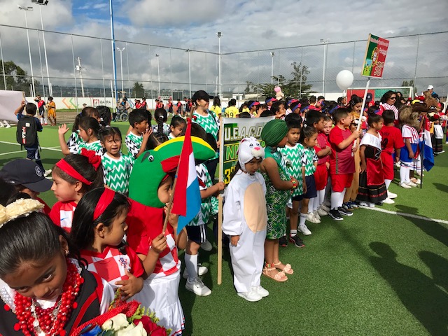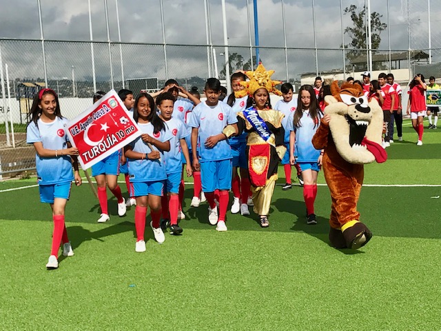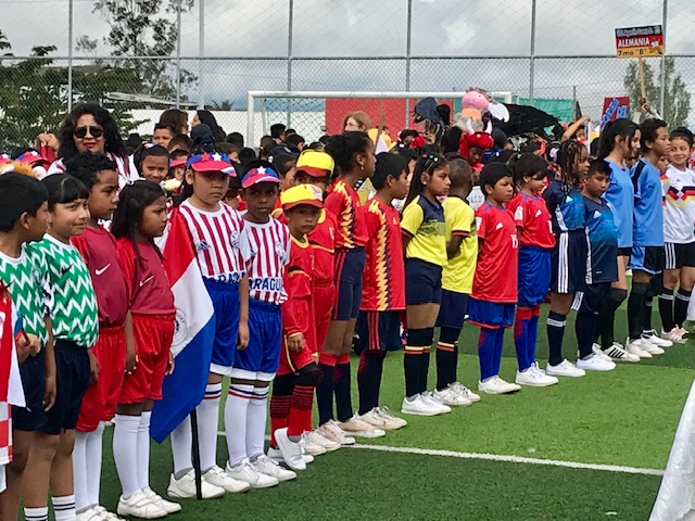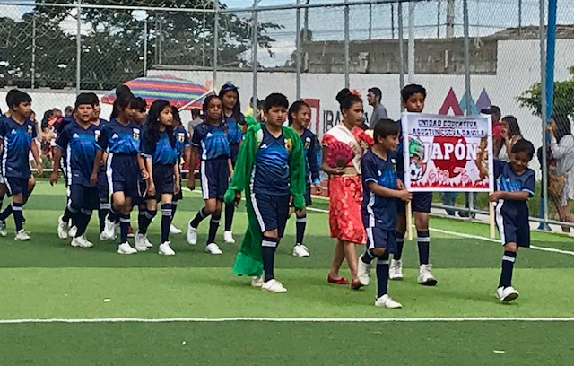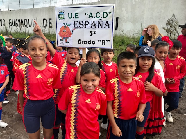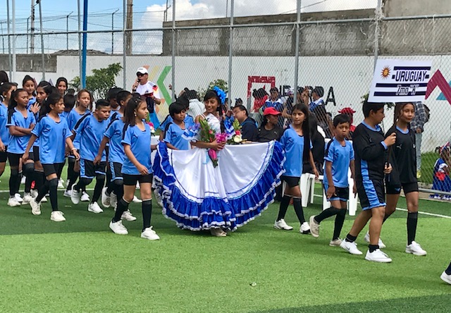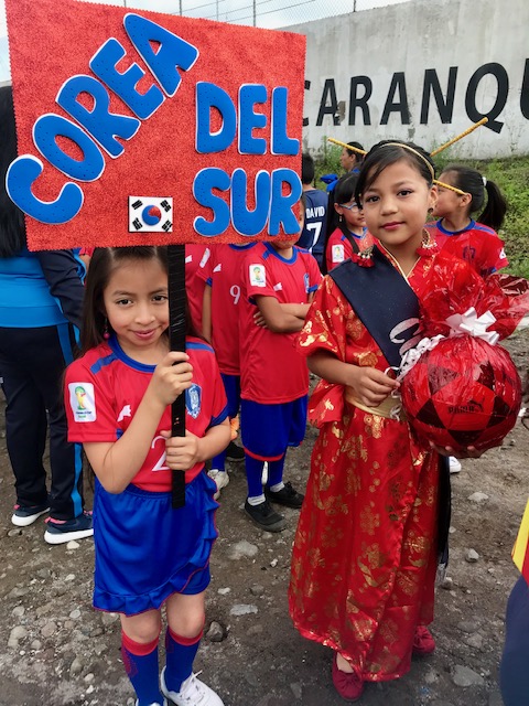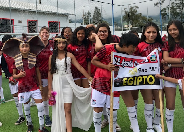 Although smaller schools only field fútbol teams, they kick off their sports season with an equally exciting celebration. This year, I took part in the event at my small school, Agustín Cueva Dávila. This year, each class chose a country to represent, and then the class president collected money