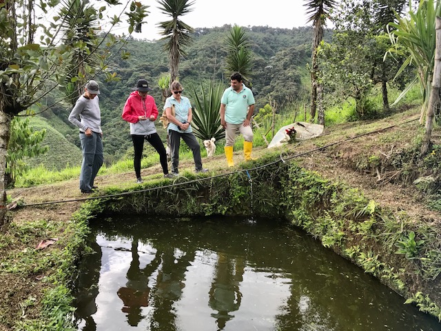 Franklin continued to show us around this hilltop agricultural community, introducing us to their pigs, their bio-gas collection pit (from what we could tell, they run completely on bio-gas from animal excrement and food waste…so cool!), their cuy pens, their various fruit trees and gardens, and finally their aquaculture ponds. Being a bit of a fish nerd myself, I was super interested to see the simplicity of their systems and witness sustainability in action. Watching them cast-net and select the largest and juiciest tilapia to sell/trade with their neighbors put a grin on my face, despite how tired I still was from traveling.
