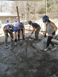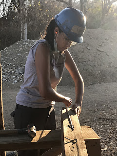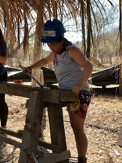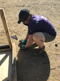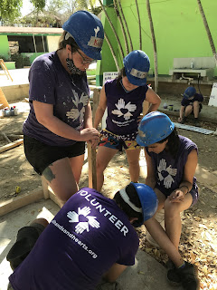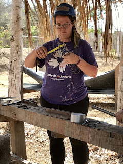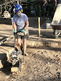 So here I am, a construction laborer, four weeks into my commitment. Before coming here, I had very little experience with power tools and I really had no idea how to start building something- anything- useful. During our initial 10 days of quarantine at our Base Camp, we used the time to get trained on how to safely use different tools and build some things to enhance the hotel grounds where we live. Tables, shelving units and shade palapas for the security guard and cooks were some of what we built. It was such a new experience for me to design and build something useful, it gave me pause to reflect upon what processes I value. For example, I’m happy to spend months preparing, planting and nurturing my garden and upon harvest, hours and hours more in my kitchen cooking salsa or homemade jam. I would never think about buying a jar of jam because I was raised to know that making my own was best. But if I ever wanted a shade shelter for my garden, I’d NEVER consider building one. I’d go down to the store and buy a collapsible tent- no matter how much it cost. To build it, I thought would be a huge waste of time. But here, with bamboo growing near the river ready to cut, and palm fronds laying everywhere for the taking, a shade shelter can be created in a few hours for only pennies spent for the wire. And I built it. I was proud of my efforts and surprised at how much pleasure I took from seeing it standing. I value that. With my new skills and confidence, I’m learning to value different processes and different things- especially the amount of work, materials and details that go into constructing a building! After all of us volunteers received a negative result on our third Covid-test, we were able to take off our masks within our group, leave our Base Camp for the first time, and finally head to our work sites. There, I’m gaining confidence and skills in completely different tasks and feeling very valuable in the process.
