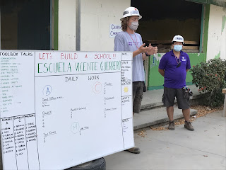 Dinner is then served family style (strictly within our groups) and our evening is free to hang-out with our group, attempt to find a place on our own in camp, or join one of the evening events. We’ve played Mexican Bingo or Loteria, participated in Trivia Nights, large group yoga classes, Speed Dating chat sessions through large clear plastic dividers, and Spanish Lessons designed to help us write a basic Spanish letter to one of the school kids who want a pen pal. Again, community events to meet and play with the kids are the previous norm of an AHAH program. Not anymore. We can only meet the general school community through a letter exchange. It’s all so sad, getting the opportunity to integrate with the community was a big hope of mine. But in reality, this effort transcends the kids who will reap the reward. Thirty-four volunteers and 17 staff members from more than 20 different countries have come together during a pandemic to this remote, earthquake prone, sandy community to build two resilient and safe schools, the center-points of these communities, which will serve them for generations to come. It is an extraordinary effort supported by thousands of funders and program visionaries who are finding ways to do good despite the obvious obstacles in the world today.