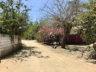 While the others load into the van for the short ride home, I often change into my sandals and walk the sandy backroads back to Base for a little time alone, and a chance to see the real Mexico. Along the way, I pass a farmer working in his Nopales cactus field. I drop in to chat with a little store owner who is still homeschooling her children due to the Covid shut-downs. Her daughter is in 3rd grade and she gets very little direction from the teacher. But admittedly, they are lucky. They have internet. Most families don’t have that, so “virtual school” is impossible for many children here. A little further on, I pass one of the largest most expansive trees I’ve ever seen. It reaches completely across the road with its graceful limbs and each time I see it, it takes my breath away. Then, there’s the banana plantation on the left, and the drainage ditch I cross easily as I walk under the road- something I can do now that it’s not the rainy season. Finally, after the restaurant and the car wash, I turn down another unnamed sandy road and walk past the house with perpetually drying white sheets hanging from the line. I assume that family must have the contract to do the washing for one of the local hotels down by the beach.