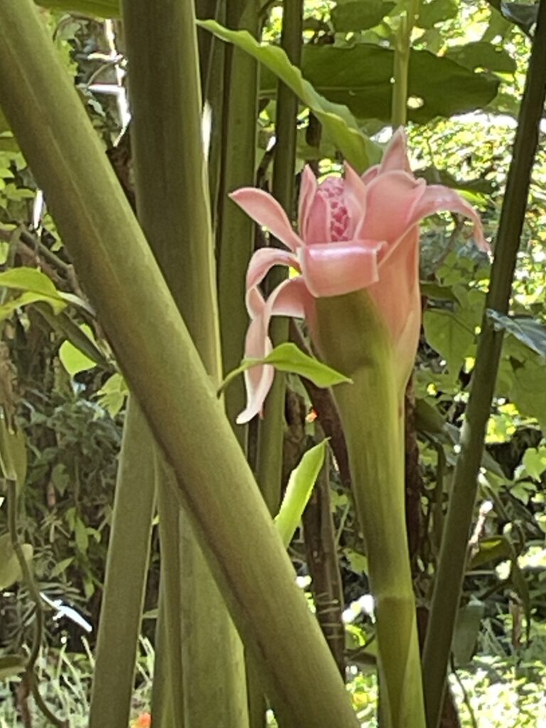 I loved walking in the cool shade of this tropical forest filled with tall trees, a variety of plants and so many other beautiful tropical flowers.