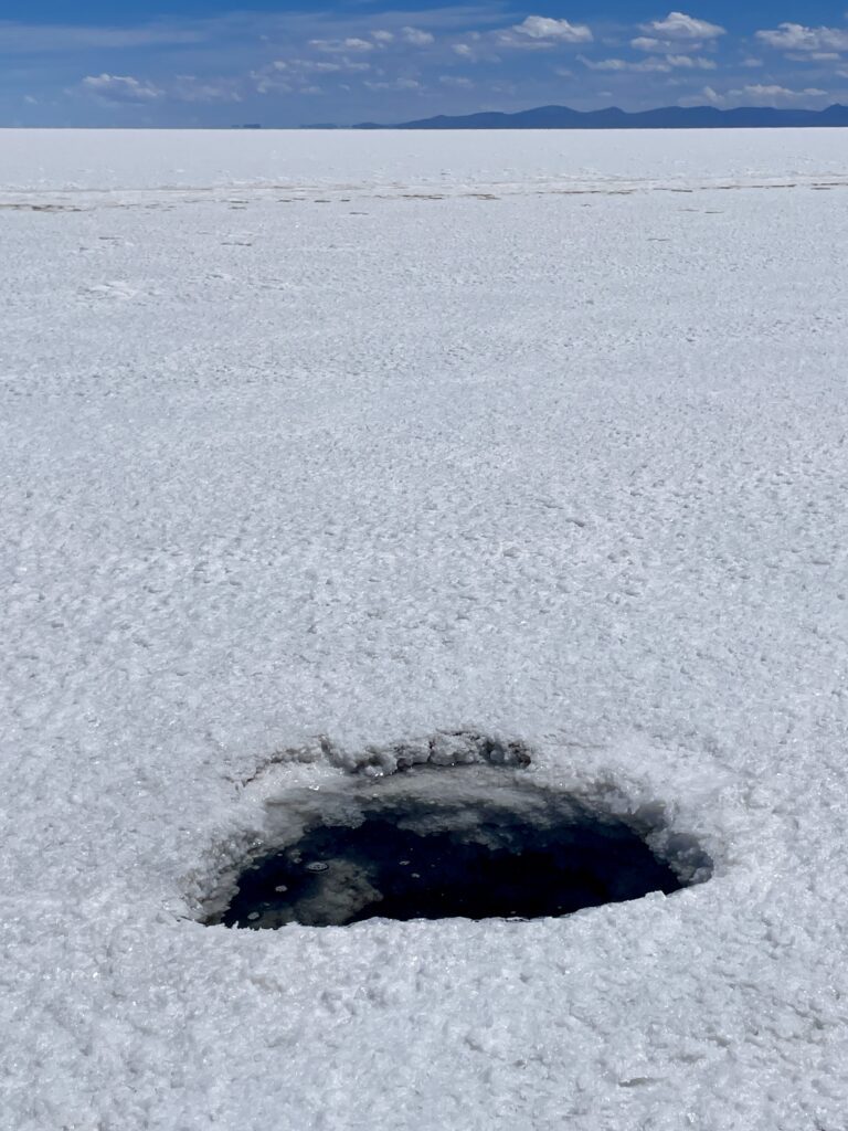 Because the salt isn’t completely solid throughout the Salar, we came across some sink holes that were quite deep. Yikes!
