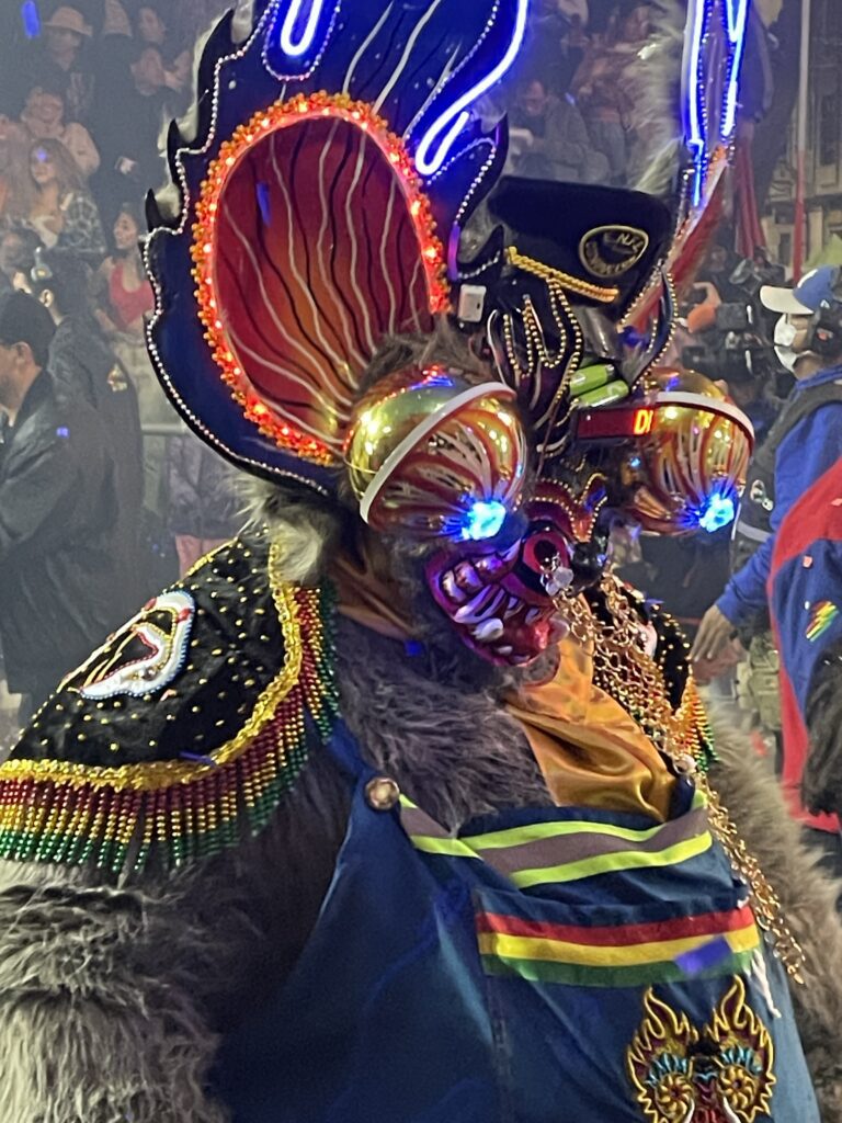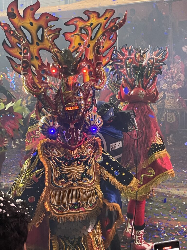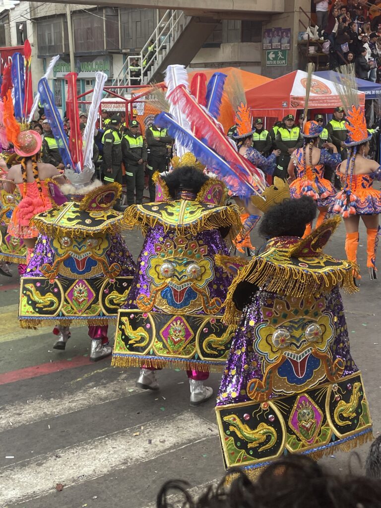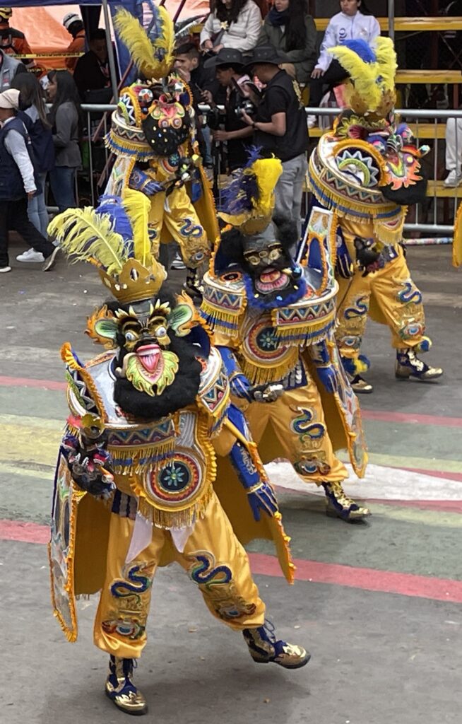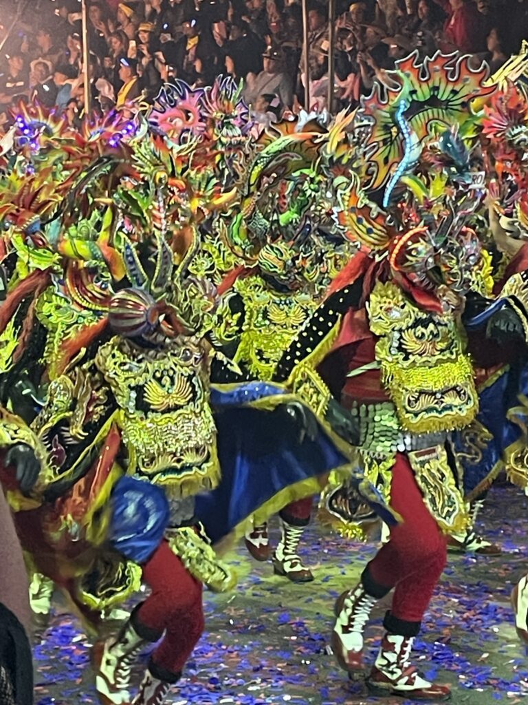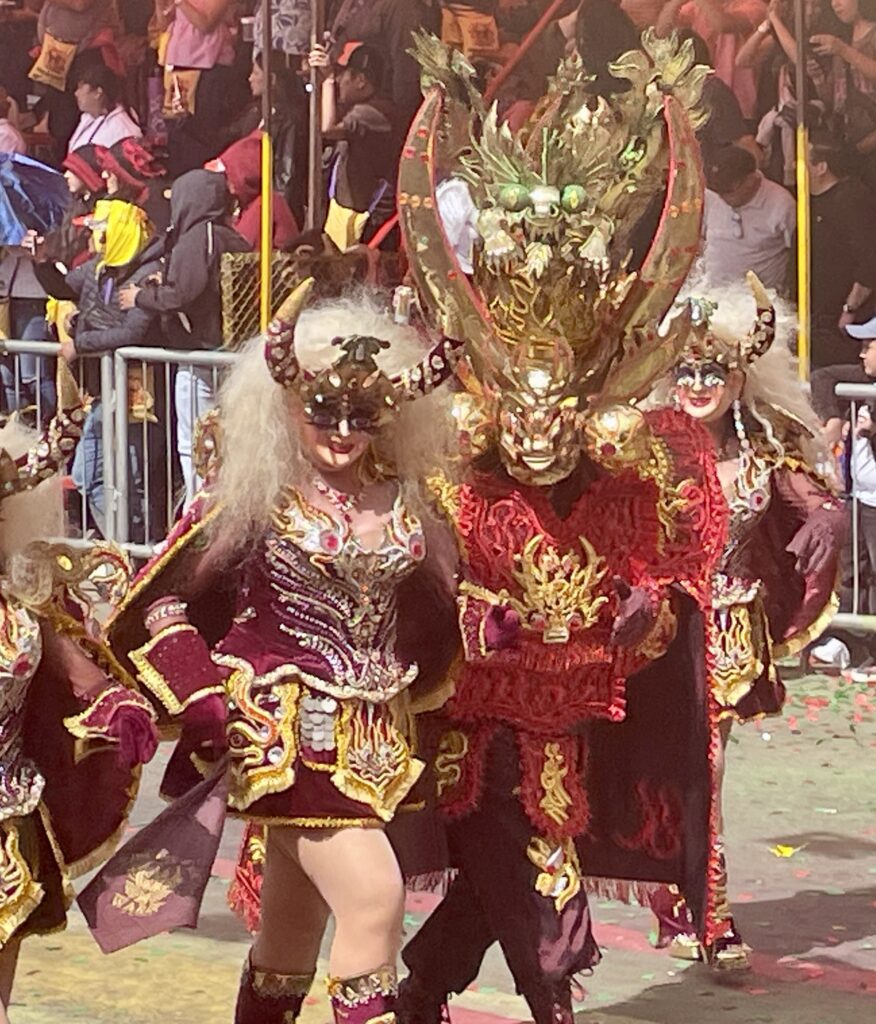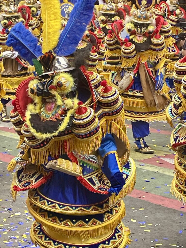 First, as it was explained to me, the entire parade in Oruro celebrates the history of Bolivia across different time periods showcasing different classes of people. To demonstrate all of these entities, there are 18 different dance groups (called comparsas) who gather, contract their designers for their costumes, learn the specific dances of their characters, and perform during Carnaval celebrations across Bolivia. It’s an immense undertaking for thousands of people, and I think they must start planning immediately for the following year.