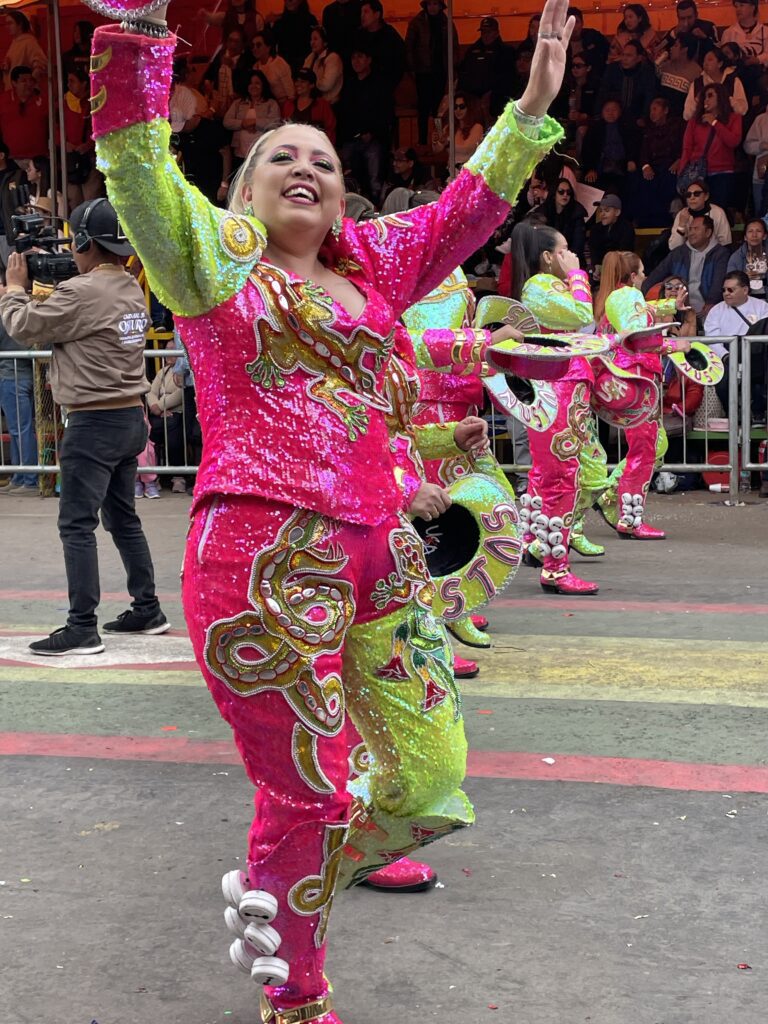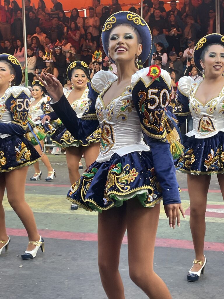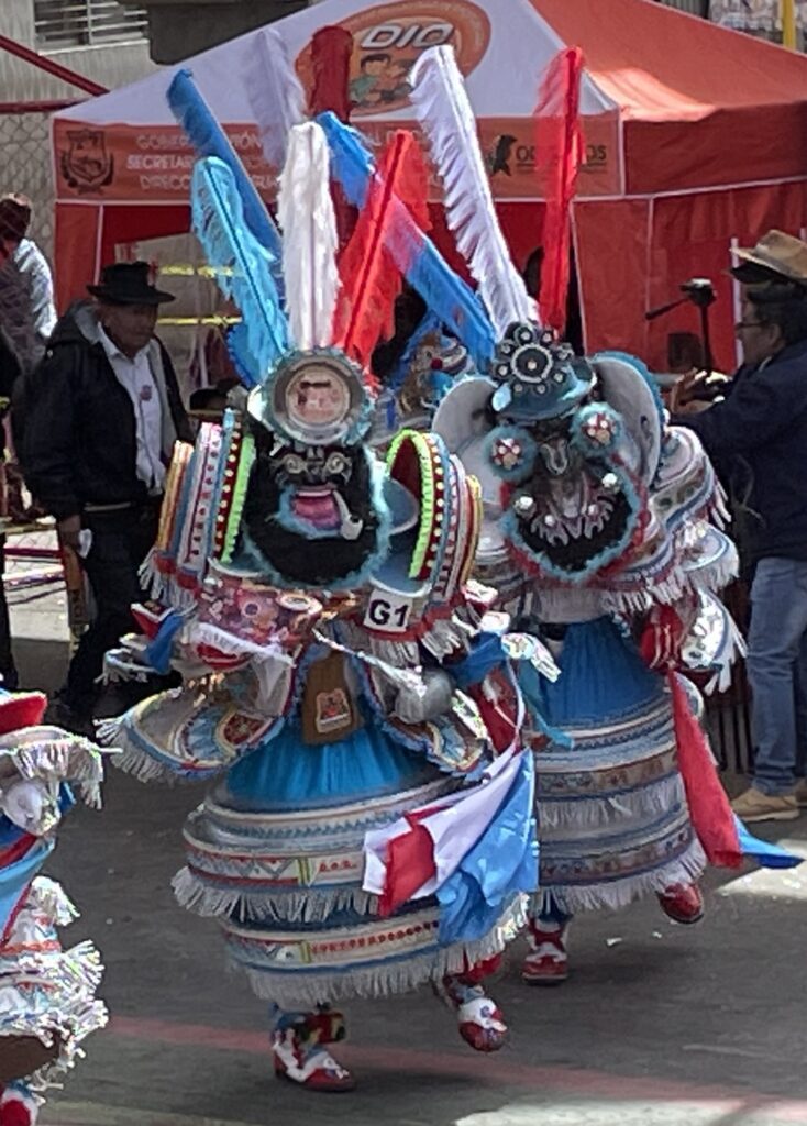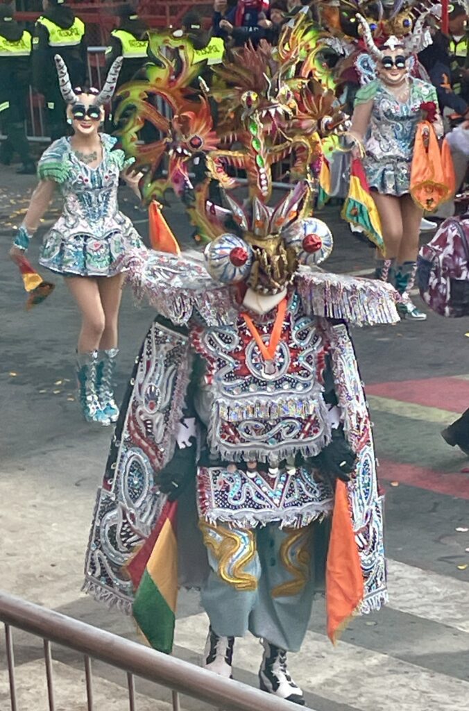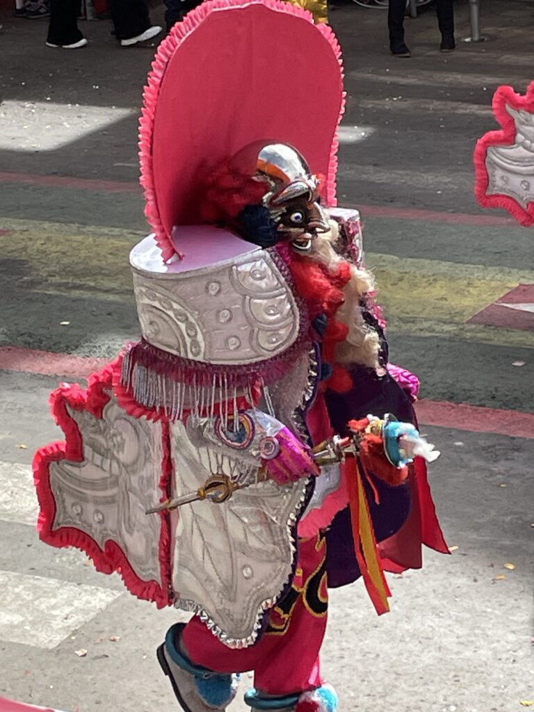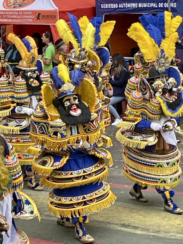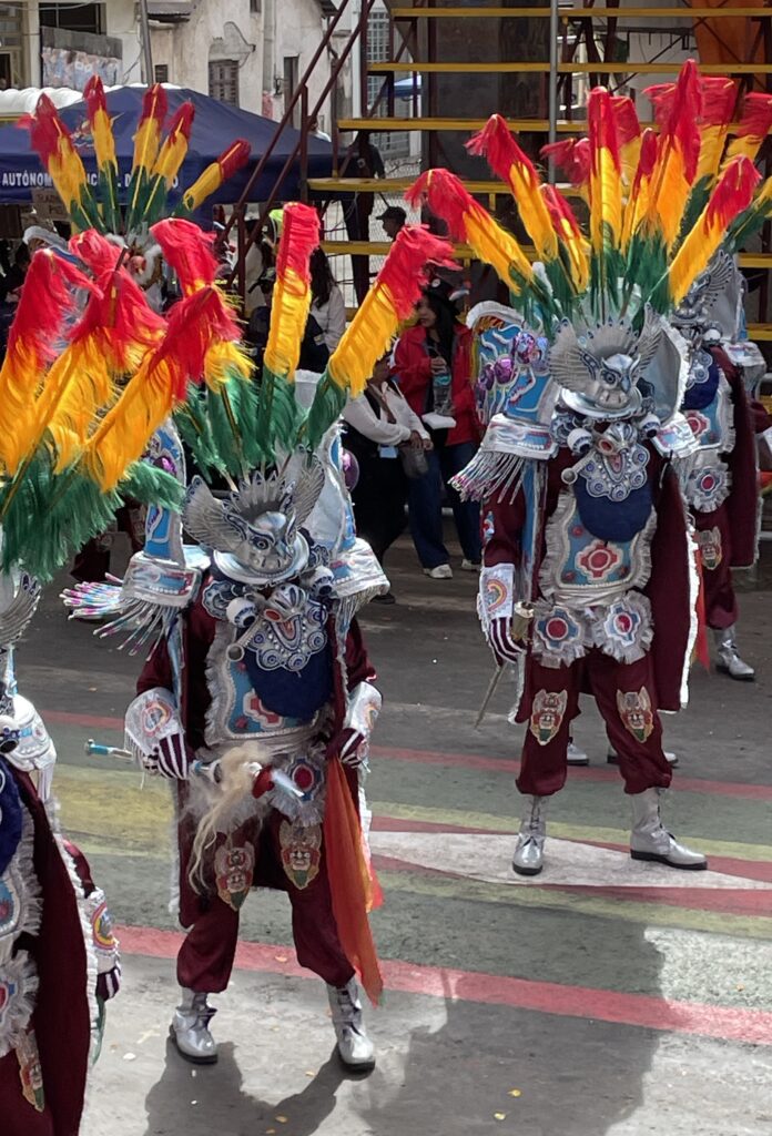 First, as it was explained to me, the entire parade in Oruro celebrates the history of Bolivia across different time periods showcasing different classes of people. To demonstrate all of these entities, there are 18 different dance groups (called comparsas) who gather, contract their designers for their costumes, learn the specific dances of their characters, and perform during Carnaval celebrations across Bolivia. It’s an immense undertaking for thousands of people, and I think they must start planning immediately for the following year.