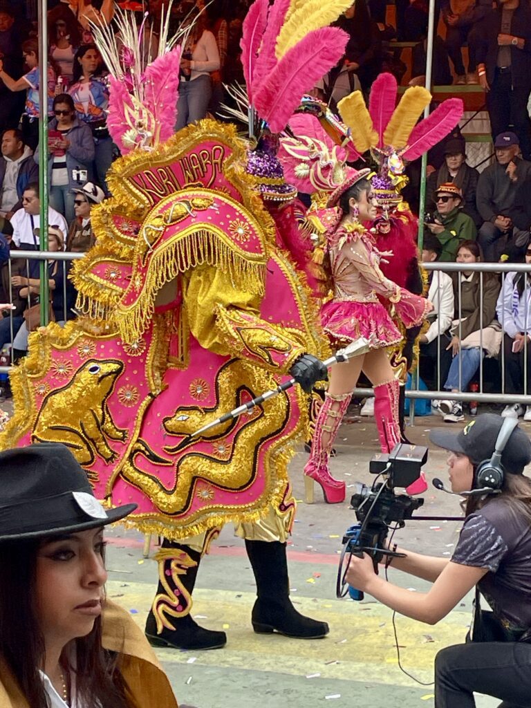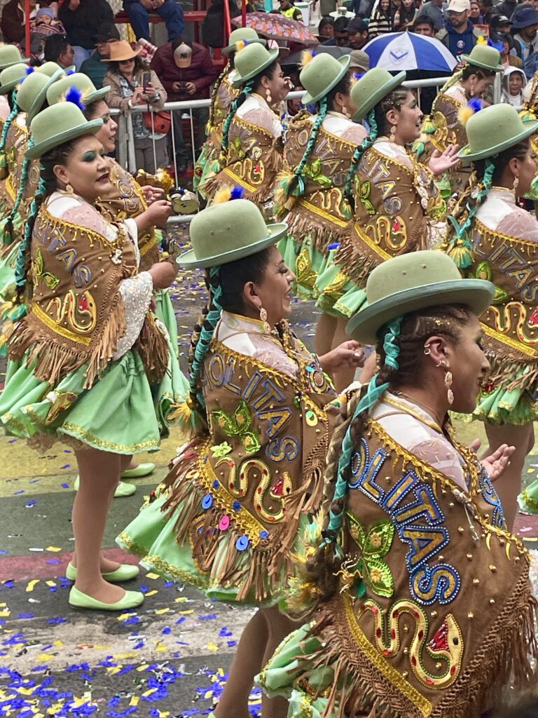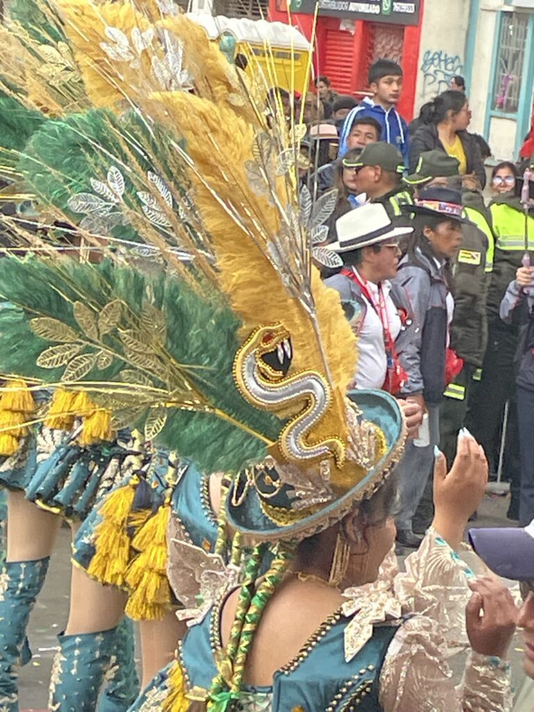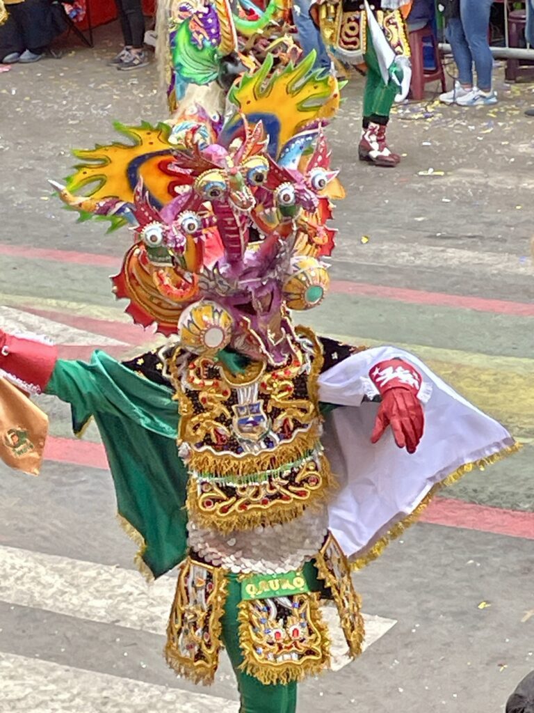 So while getting a little day-drunk with the college kids, I tried to take pictures of all the entities – and the highly artistic costumes – among the chaos! Remember, there were thousands of dancers displaying incredible costumes with an array of colors, symbols and styles, old and new. Together, across this entire parade – and not in any linear order – they were telling the story of the history and people of Bolivia.
